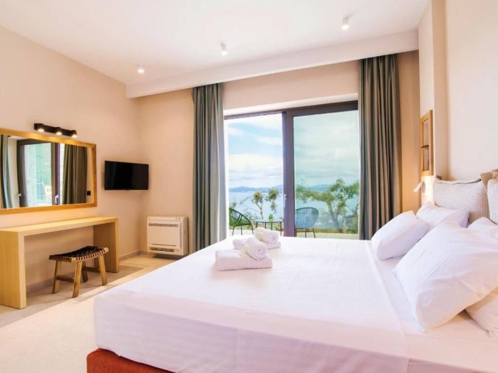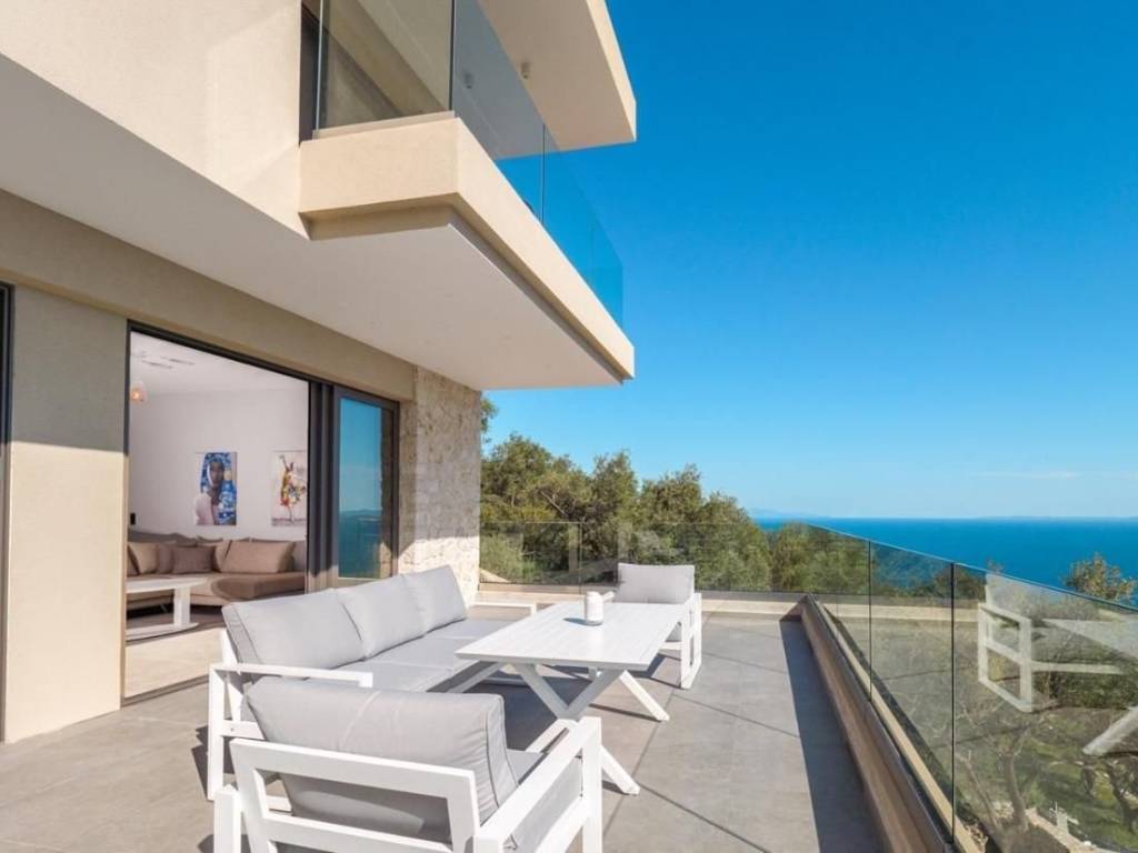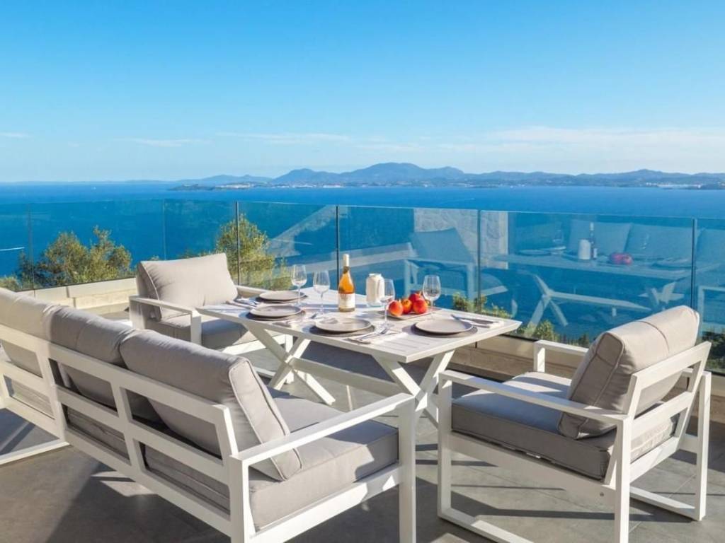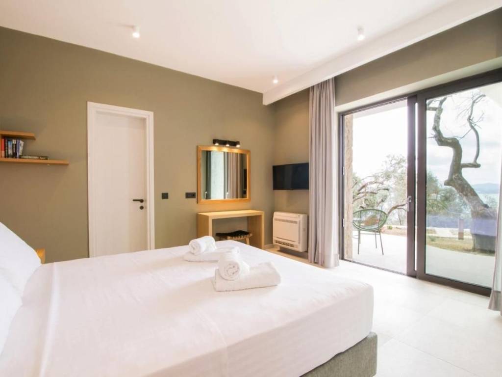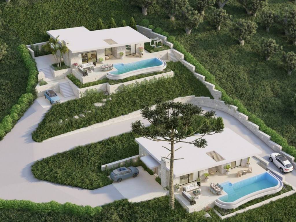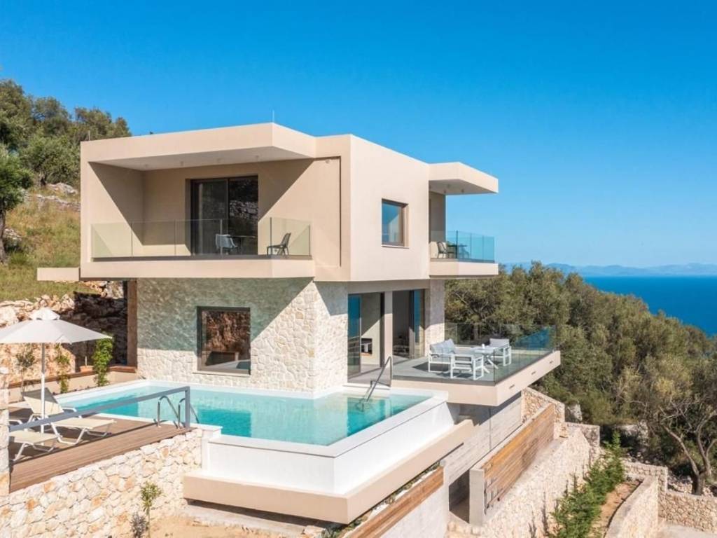For Sale: Two Stone Villas with Panoramic Sea Views in Katavolos, Nissaki – North East Corfu Property Features Set on a private plot of 5,687 sq.m., this property comprises two newly built stone villas in the peaceful hillside of Katavolos, overlooking the Ionian Sea. Designed with care and constructed to a high standard, both homes offer stunning views, privacy, and comfort. Villa 1 (157 sq.m., completed in 2022) is arranged over two levels. The ground floor features an open-plan living and kitchen area, while the first floor includes two ensuite bedrooms, each opening to balconies with uninterrupted sea views. Villa 2 (157 sq.m. completed in 2023) is laid out on one level, with a spacious lounge, kitchen, and two ensuite bedrooms — all enjoying direct views to the sea. Each villa includes a private swimming pool, a 40 m³ water tank, and a 30 sq.m. storage building. Both homes are equipped with smart house technology, allowing for remote monitoring and control via mobile application. An adjoining plot of 2,520 sq.m. is also included in the sale, with a valid building permit for two additional stone villas (each 100 sq.m. with its own swimming pool), offering further development potential. Location The property is situated 2 km from the main road and 25 km from Corfu Town and the airport. The area is known for its tranquility, lush green landscape, and elevated position with panoramic views of the sea and surrounding countryside. Beaches, tavernas, and local amenities are all within easy reach. Highlights Breathtaking sea and countryside views High-quality stone construction Full privacy and serene natural surroundings Smart home features Development potential with valid building license