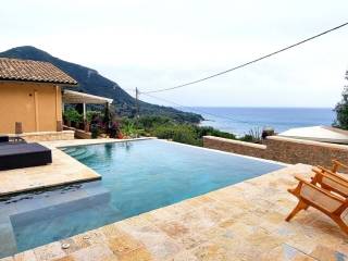 For Sale: Villa in Paramonas, West Corfu Set in the picturesque seaside village of Paramonas, this charming villa combines comfort, elegance, and breathtaking views of the Ionian Sea. Thoughtfully designed across two levels, it offers privacy and spacious living — ideal for year-round residence or as a luxurious holiday retreat. Layout & Features Ground Floor (45.68 sq.m.): One bedroom with en-suite bathroom, a fully equipped kitchen, and a convenient storage room with wardrobe. A large balcony door opens directly onto a sun-drenched terrace — perfect for morning coffee or evening relaxation. First Floor (99.9 sq.m.): Two comfortable bedrooms sharing a bathroom, an additional guest WC, and a welcoming living room with a fireplace for cosy winter evenings. A spacious kitchen and a large balcony offer uninterrupted views of the sparkling sea. The entire floor is equipped with underfloor heating, which can be conveniently controlled via a smartphone app for optimal comfort and energy efficiency. Plot (495 sq.m.): Features an automated saltwater swimming pool with a Jacuzzi, a fully equipped covered outdoor kitchen, stone-paved surroundings, and ample space for lounging under the sun. The home is also fitted with a large solar panel system, producing more than 50 kWh daily on average during summer, complemented by a high-capacity battery that stores solar energy to power the home at night. This setup allows for full energy independence from the grid. Energy production and consumption can be easily monitored in real-time via a smartphone app. The property is also connected to lightning-fast Starlink satellite internet, offering download speeds of up to 300 Mbps throughout the house and outdoor areas. Location Situated in Paramonas, one of West Corfu’s most serene coastal villages, the villa is just a short stroll from the beach and enjoys unobstructed sea and sunset views. It offers easy access to local tavernas, cafés, and scenic walking trails, blending natural beauty with everyday convenience. Ideally located between two charming year-round villages — Agios Mattheos (3 km away), known for its vibrant local life, with cafés, restaurants, and supermarkets, and Pentati, a picturesque hillside village offering shops, tavernas, and a strong sense of community — both are easily walkable, adding to the property’s appeal as a tranquil yet well-connected retreat. Highlights Additional 2,500 sq.m. plot opposite the villa, fully fenced and secured by an electric gate, featuring: Covered parking space Landscaped gardens with mature trees and vibrant flowers Shaded outdoor seating area Stunning sunset panoramas over the Ionian Sea Ideal for permanent living, a holiday escape, or a rental investment