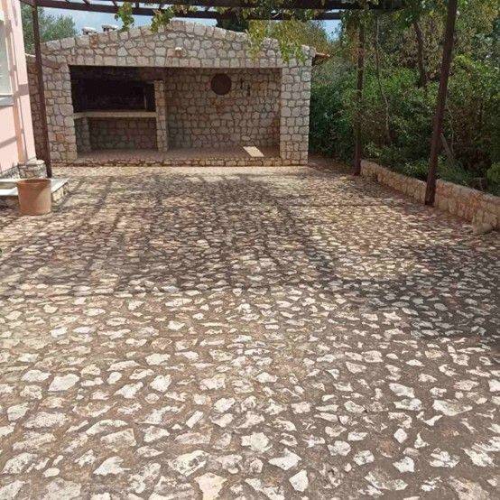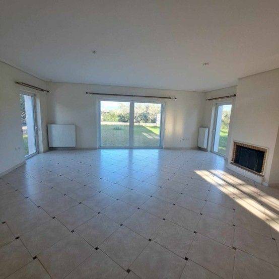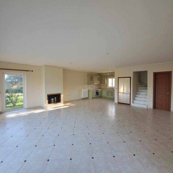 Ισόγειο: Ευρύχωρο σαλόνι με τζάκι, με θέα στον κήπο με γκαζόν, δένδρα, αυτόματο πότισμα. Δρύινη εντοιχισμένη κουζίνα με έξοδο σε πετρόκτιστη αυλή 160 τ.μ. με barbecue - τραπεζαρία, αποθήκη, ζαρντινιέρες, όλα κτιστά πέτρινα. Parking. Μπάνιο , δύο πόρτες ασφαλείας - σαλονιού και κουζίνας, Λευκή μαρμάρινη σκάλα.