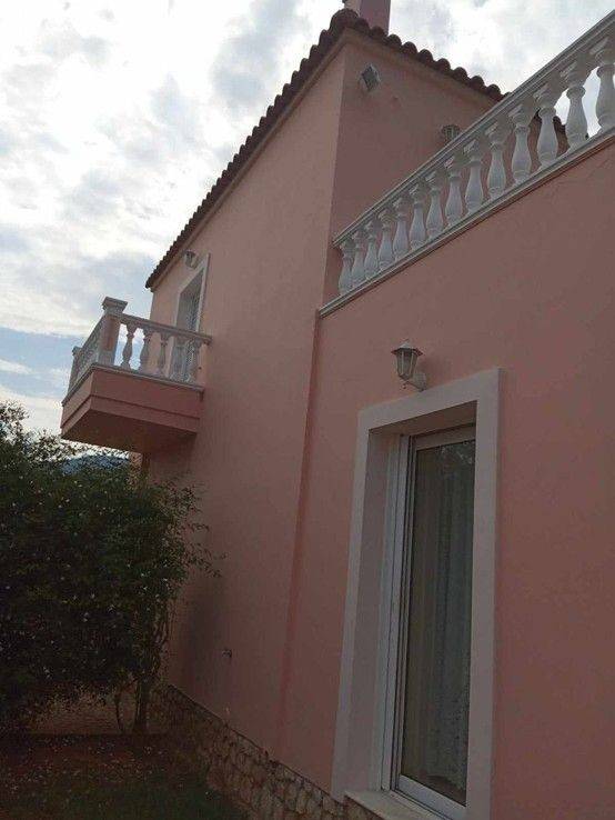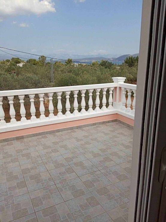 1ος όροφος: Τρία υπνοδωμάτια, εντοιχισμένες ντουλάπες με μηχανισμούς, μπάνιο με υδρομασάζ. Ανοιχτή θέα θάλασσα- βουνό. Βεράντα μεγάλη 23 τ.μ. και μπαλκόνι 3 τ.μ.