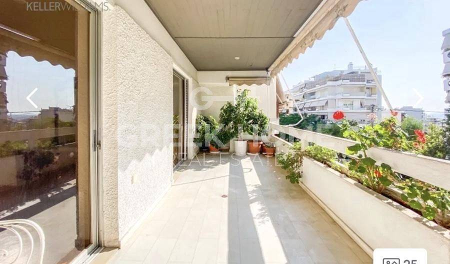 Nea Smyrni - Floor Apartment 94sqm partially furnished, bedrooms 2, 2nd, very good condition, year built 1985, energy class F, living room, kitchen, bathroom, heating type: autonomous (natural gas), parking ground floor, quiet, dual aspect apartment, luminous, unobstructed view view, frontage, storage space 8sqm, solar heater, balconies, large balconies, balcony 30sqm, tents, elevator, aluminum frames, double glazed windows, wood & marble floors, separate kitchen, night electricity discount rate, secure door, video doorbell, price is negotiable, special offer, commercial use, close to tram station (up to 500m), close to square (up to 500m).