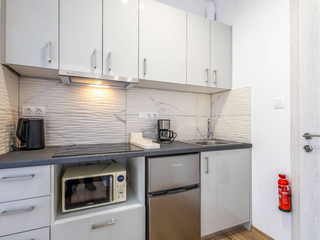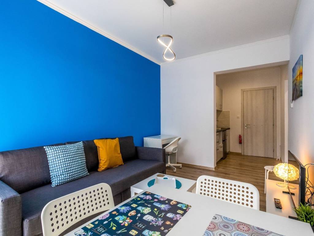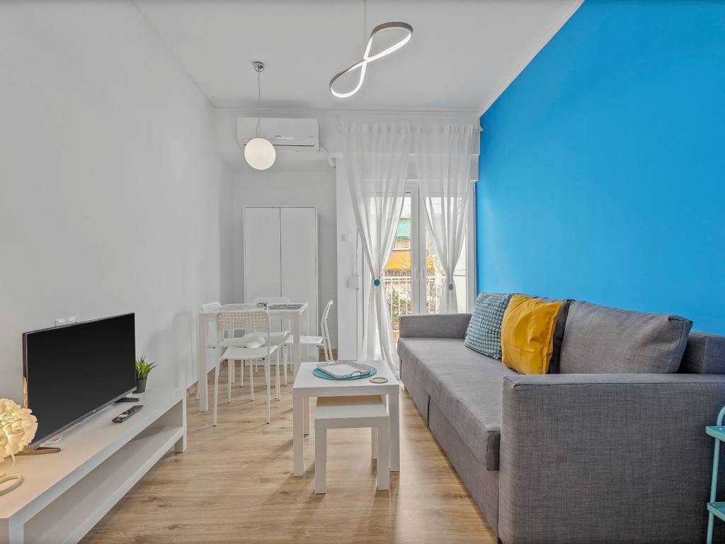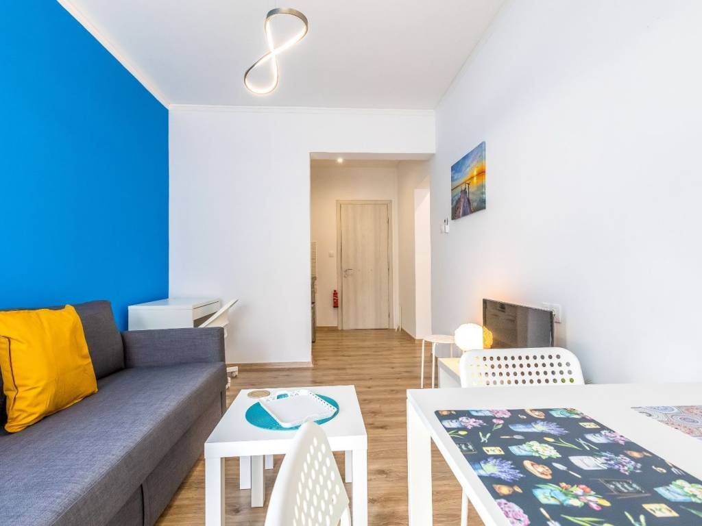 Apartment renovated in Kato Patisia, 3rd floor with elevator, open view. It has 1 bedroom with double bed, 1 bathroom with washer-dryer, living room with sofa bed, desk and chair, flat screen Smart TV, wifi, fully equipped kitchen, balcony overlooking the quiet street. The accommodation is non-smoking and offers air conditioning, cooling and heating. Suitable for medium-term rental. Kato Patisia metro station is a 5-minute walk from the apartment.