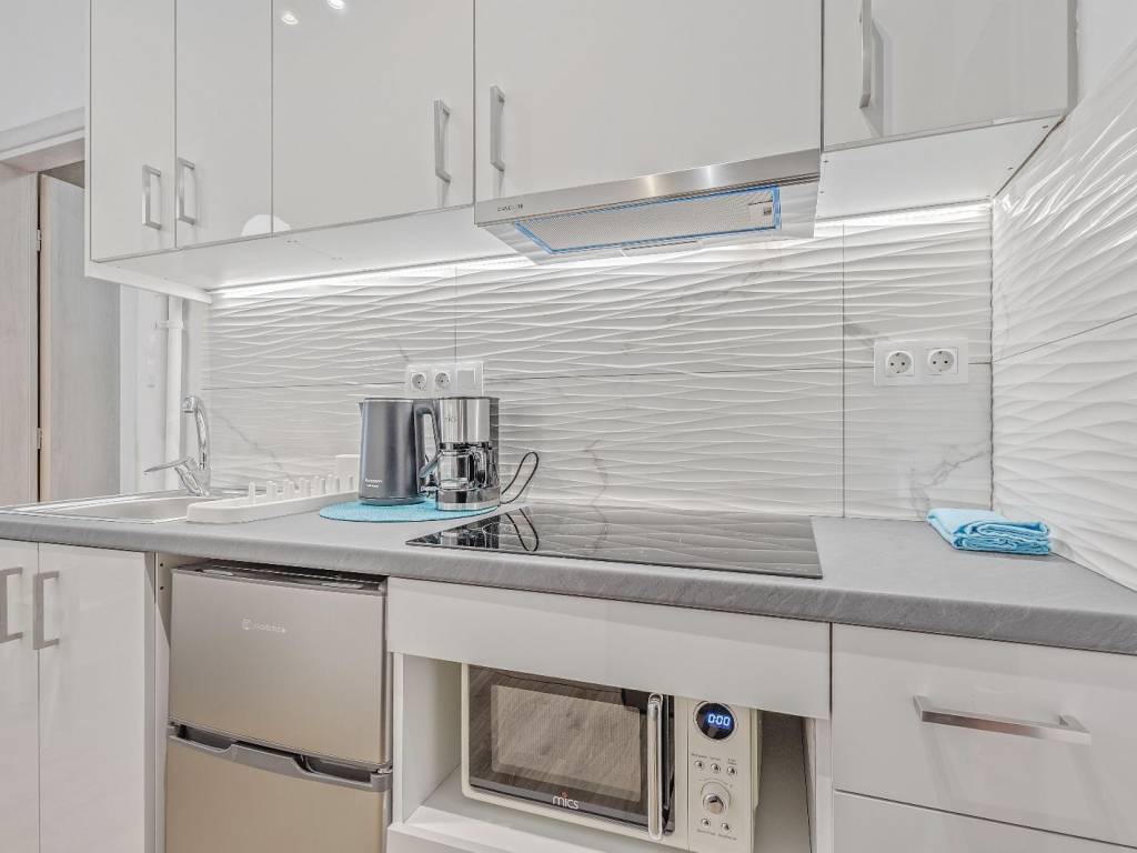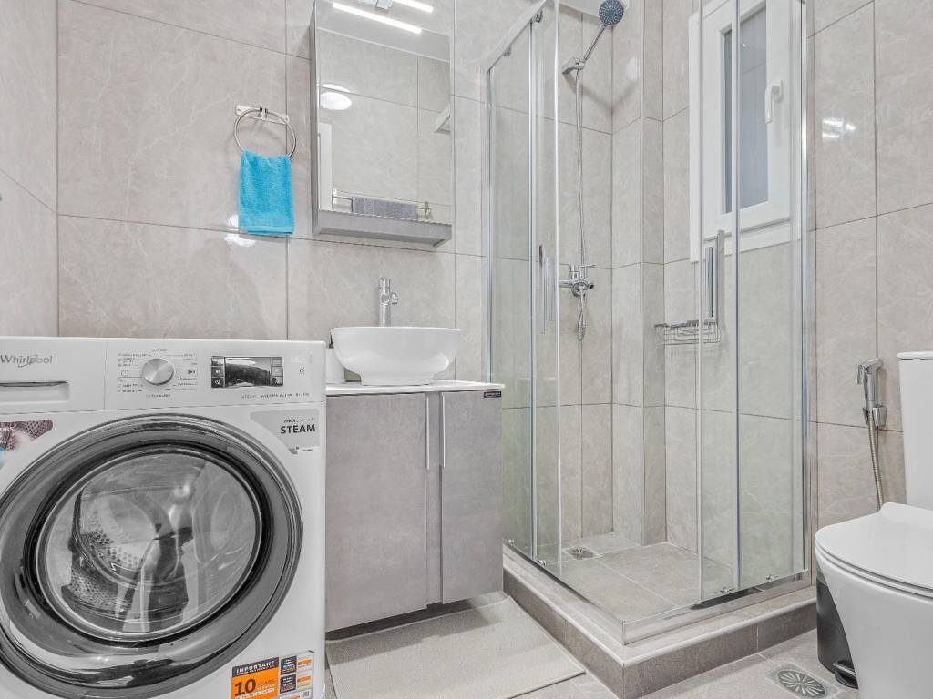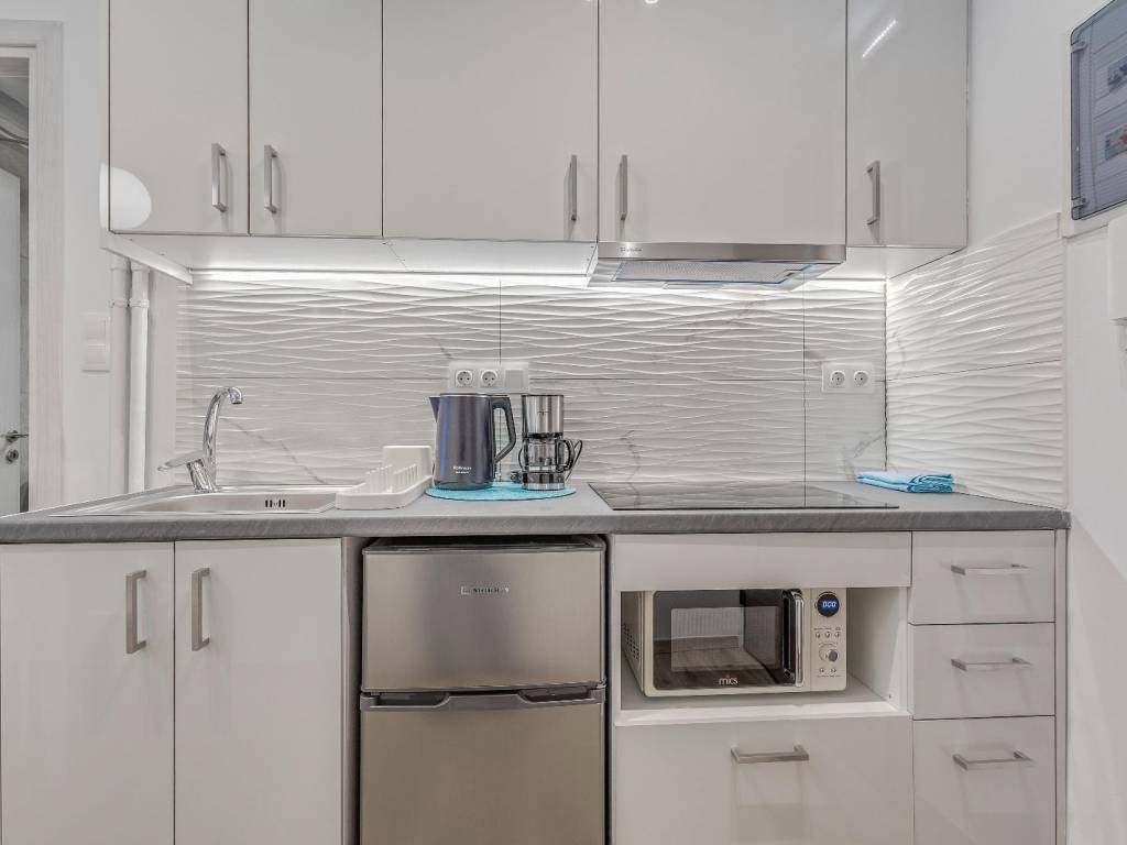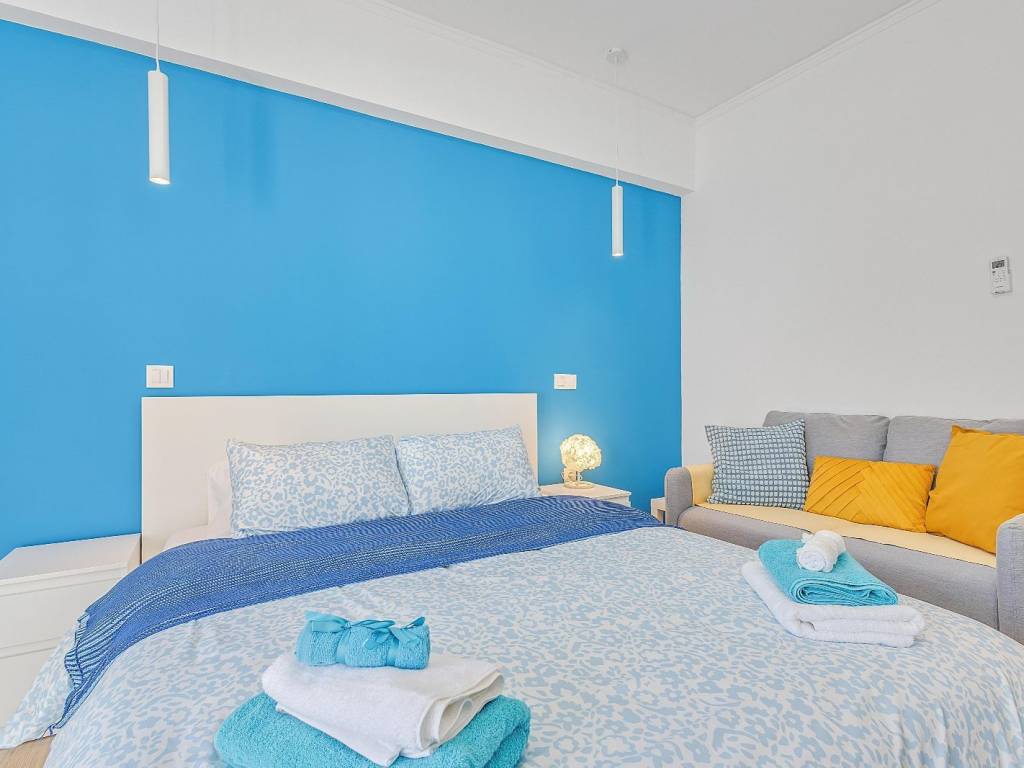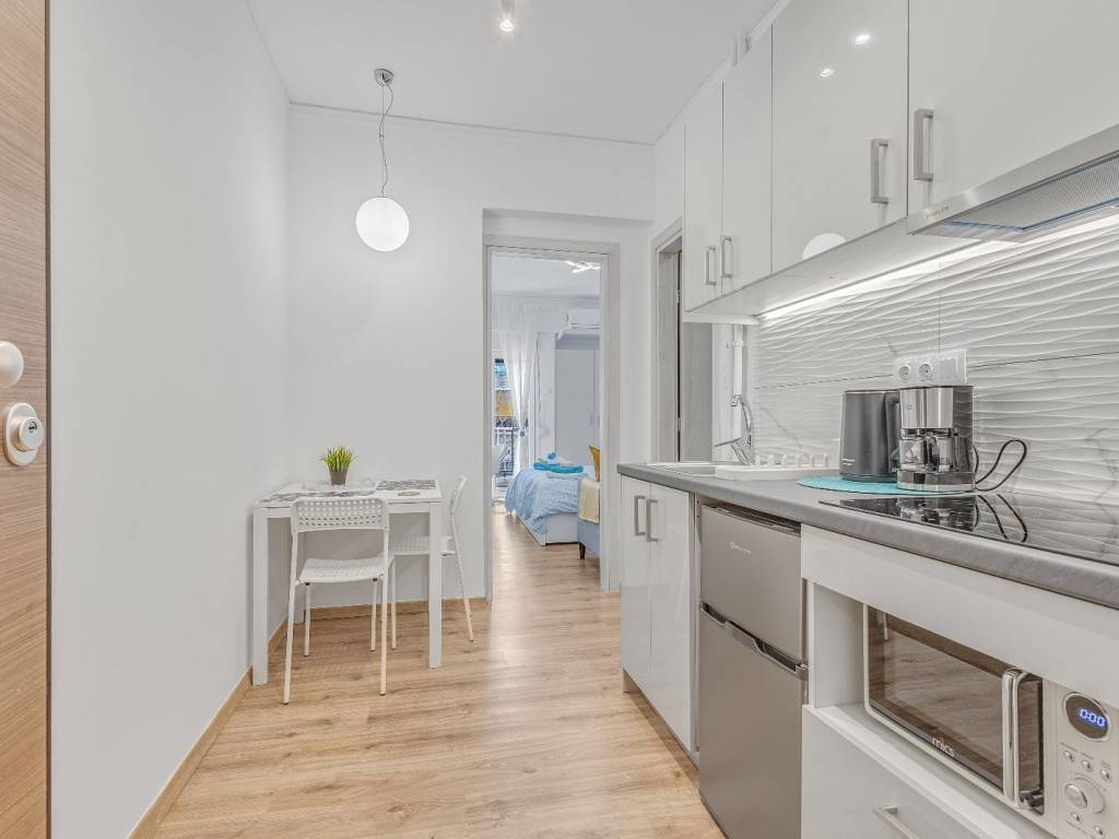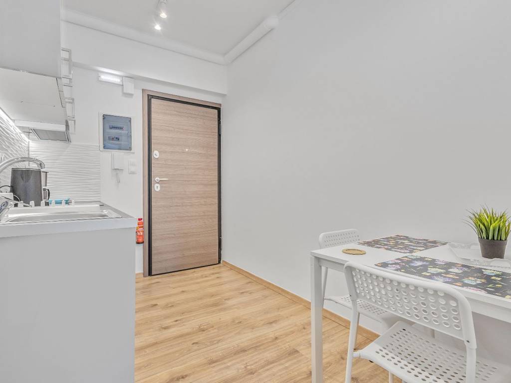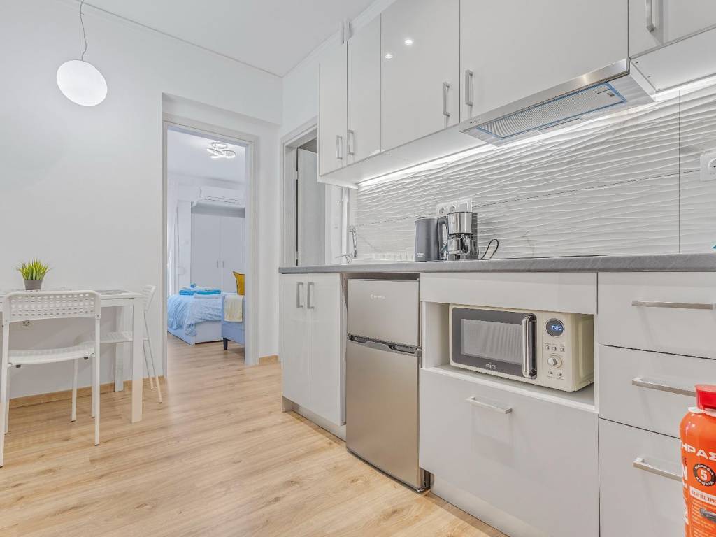 Studio renovated in Kato Patisia, 3rd floor with elevator, open view. It has 1 room, with double bed, sofa, desk and chair, 1 bathroom with washer-dryer, flat screen Smart TV, wifi, fully equipped kitchen, balcony overlooking the quiet street. The accommodation is non-smoking and offers air conditioning, cooling and heating. Suitable for medium-term rental. The Kato Patisia metro station is a 5-minute walk from the apartment.