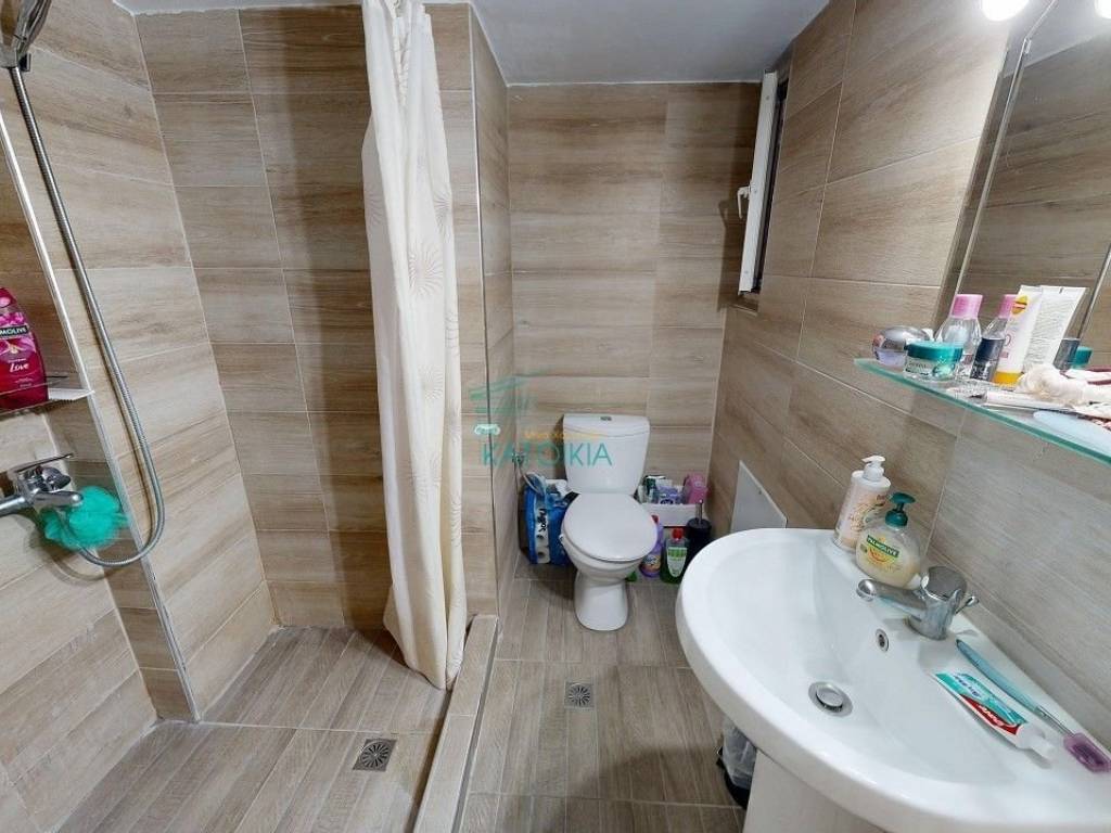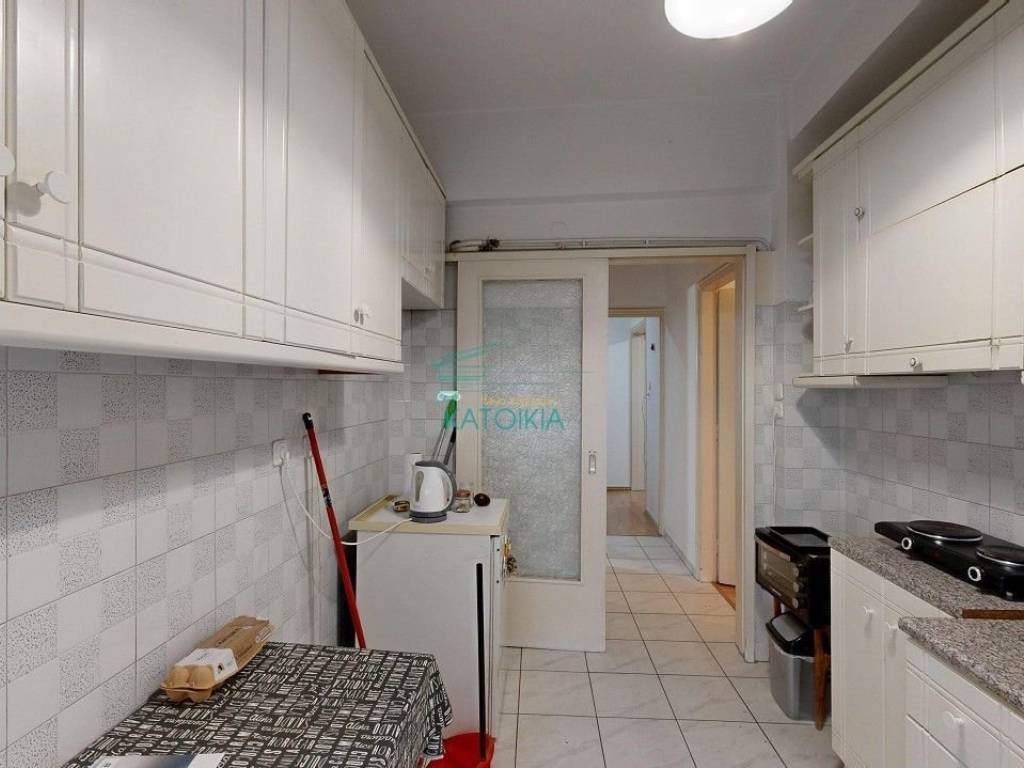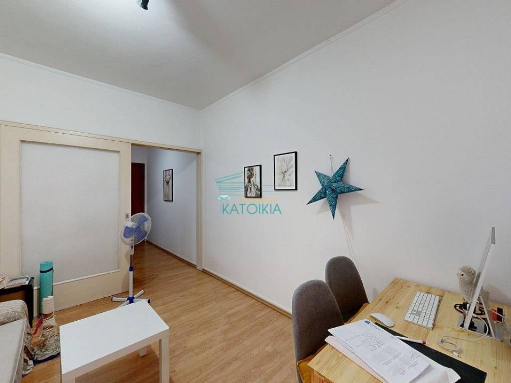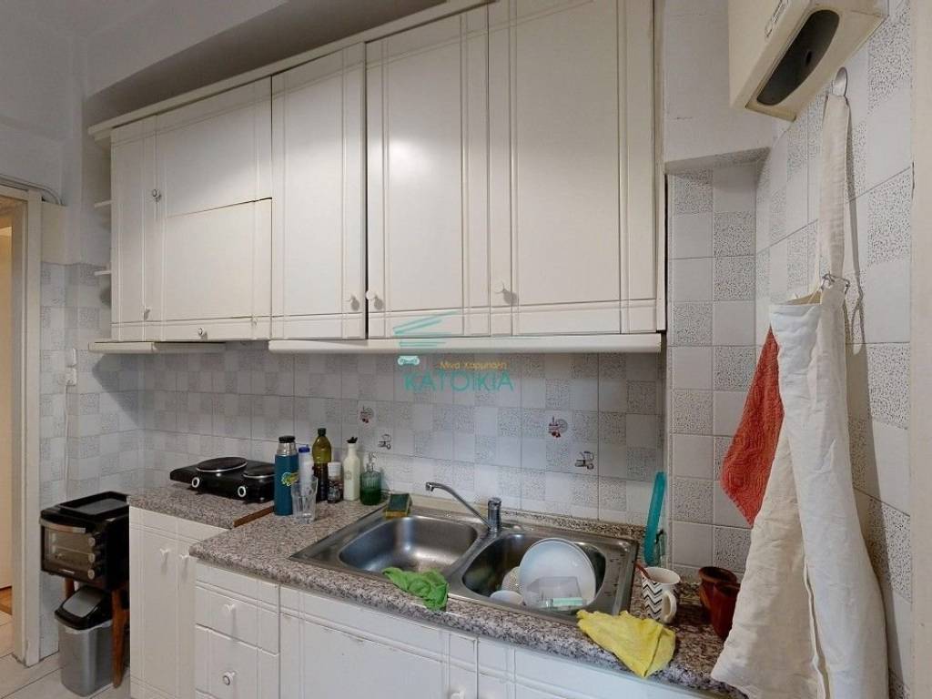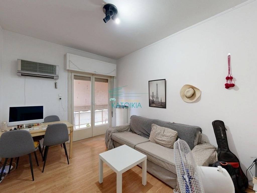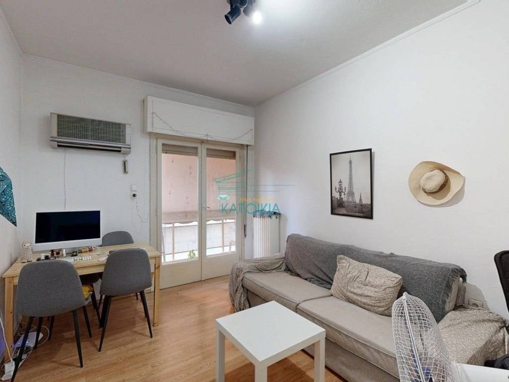 Palaio Faliro, in beautiful location with greenery (at the borders of Nea Smirni) available for sale 50 sq meters, partly renovated in 2019. The apartment is at the 2nd floor facing at the side , located at a corner plot building, in a quiet road and near a small park. Offers living room, separate kitchen, 1 bedroom, 1 fully renovated bathroom, storage cupboard on top of the bathroom, gas central heating, solar panel, air conditioning, balcony all around the property, old type wooden frames, tents, security door. Also available with furniture. code 57781