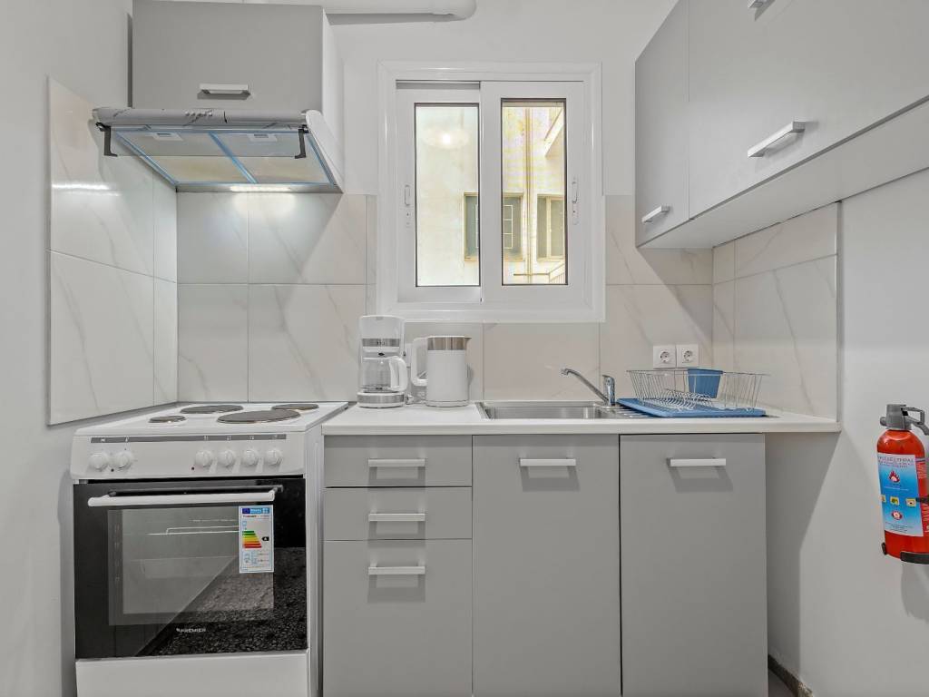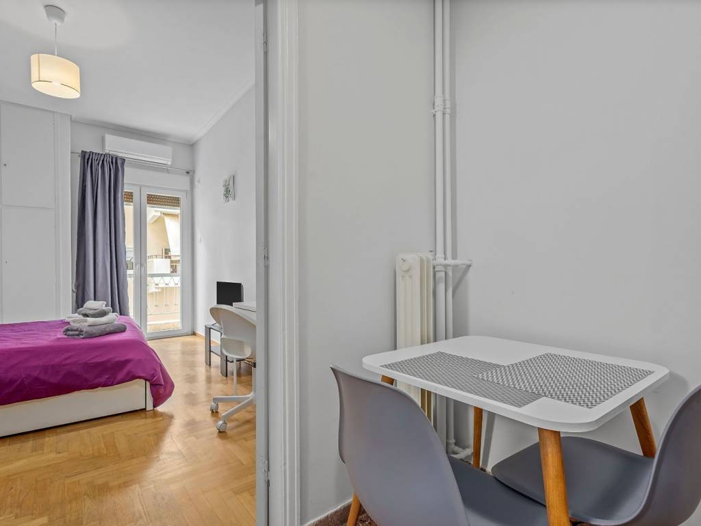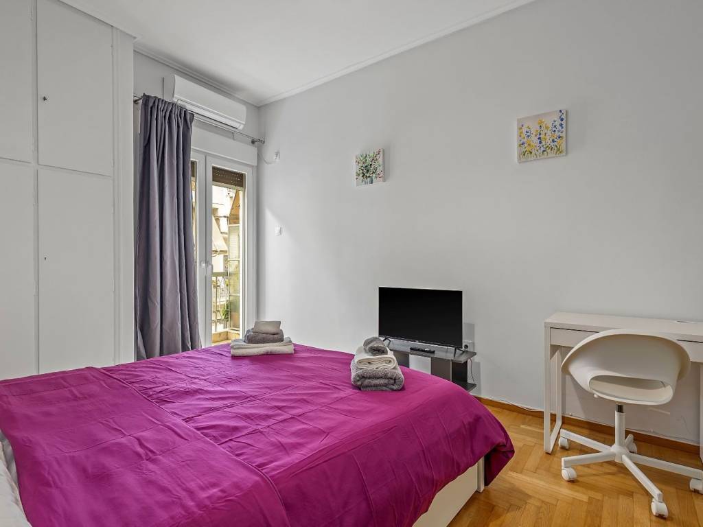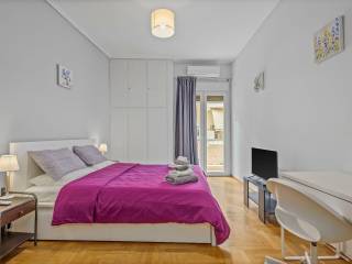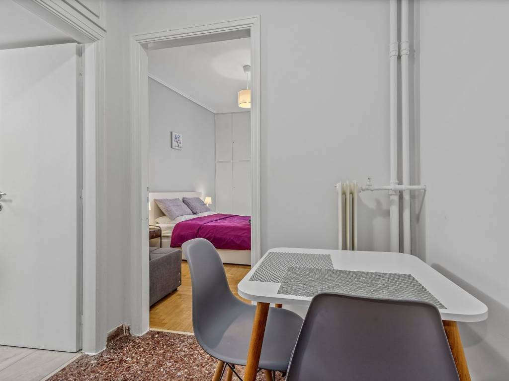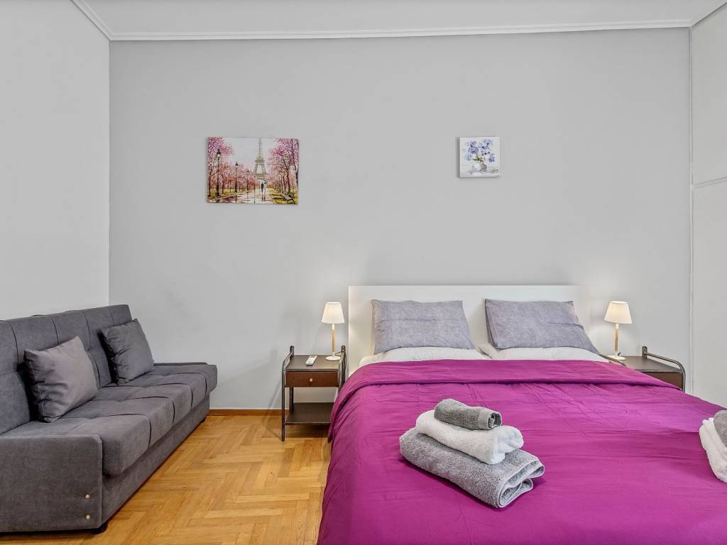 Renovated studio in Patisia, 2nd floor, with elevator. It has 1 bedroom with double bed, 1 bathroom with washer-dryer, sofa, desk and chair, flat screen Smart TV, wifi, fully equipped kitchen and balcony. The accommodation is non-smoking and offers air conditioning, cooling and heating. Suitable for medium-term rental. The Agios Nikolaos subway station is a 5-minute walk from the apartment.