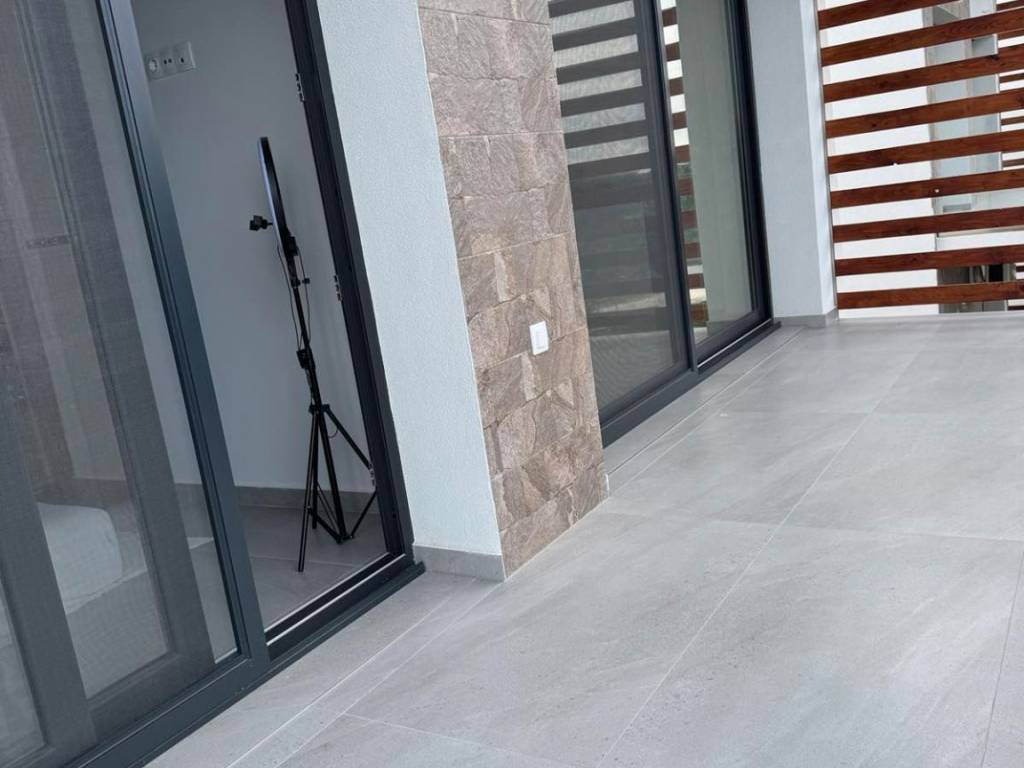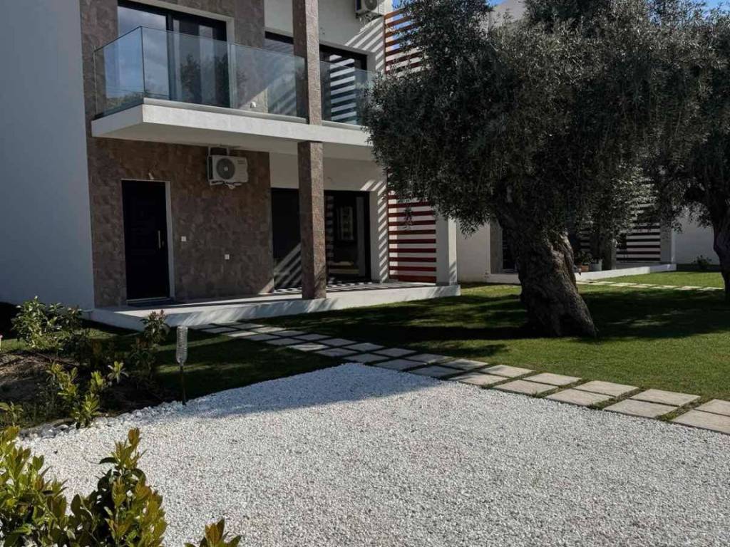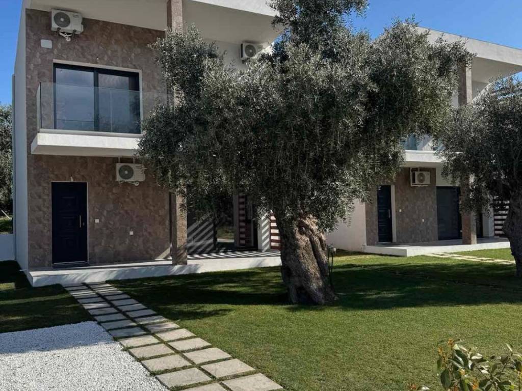 New house. First floor: kitchen-studio and bathroom, second floor: two bedrooms with connections for a second bathroom. Large terrace and balcony. House on a private plot of 160 sq. m. Unfurnished. There are two such houses. Distance from the sea - 1000 m.