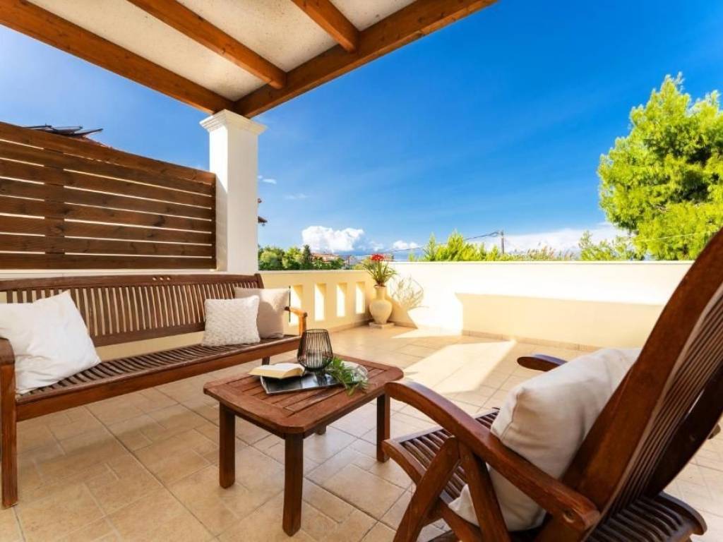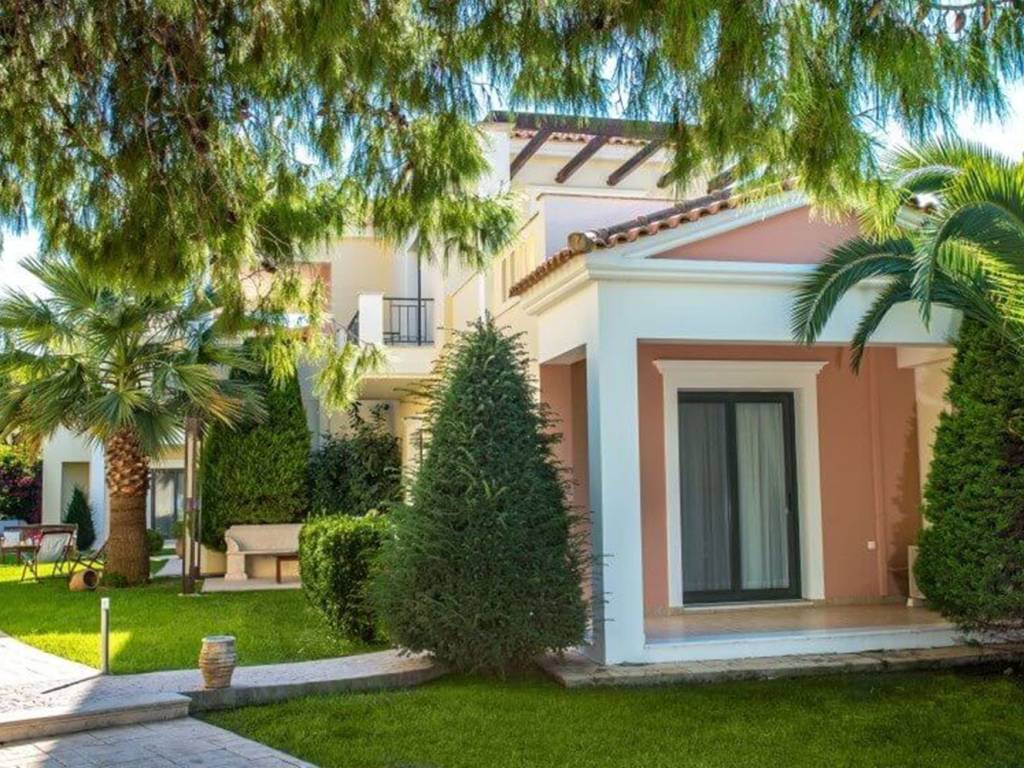 The maisonettes, 90 sq.m. welcome you with the warmth of its colors and the abundant views onto the sea. The two luxurious bedrooms are furnished in the minimalist style and offer soft lighting, thus uniquely enhancing the delicacy of the space. In addition, it offers all the aforementioned comforts, as well as two luxurious bathrooms with marble details, a fully equipped kitchen and a living area with a single sofa bed, all of which provide the setting of an unforgettable stay. Those villas are suitable for up to 5 persons.