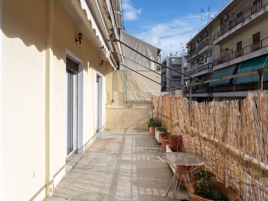 Engel & Völkers presents a sunny penthouse on the fourth floor in Kypseli, located right next to Koliatsou Square. This property has a total area of 126 sq.m., combining retro aesthetics with high functionality. The apartment includes: • A large living room with two areas, separated by a sliding door; the second area can function as a dining room, an office, or an additional room • An independent, spacious kitchen with a storage area • A separate storage room • Three comfortable bedrooms with ample wardrobe space • A bathroom with a bathtub, as well as a separate WC Exterior spaces: • A front-facing 30 sq.m. veranda with southern orientation and access from the living room and one of the bedrooms • An additional balcony on the inner side of the building with northern orientation, next to the bedrooms Key Features: • Floors: mosaics, wooden parquet, and tiles • Aluminum window frames with double glazing • Central oil heating • The building is equipped with an elevator and has reasonably low monthly utility charges This is a bright, comfortable, and functional apartment, ideal for those seeking a stylish and easily accessible residence in the heart of Athens, just a short distance from public transport, shops, and all points of interest. Location: Kypseli is one of the most interesting places to live in Athens. It is bordered to the west by Patission Street, to the south by the Areos Field, to the east by Turkovounia and to the north by the municipality of Galatsiou. Particular characteristics: The main attraction of Kypseli is the pedestrian street of Fokionos Negri. It consists of a large green strip in the centre, with trees, benches, fountains and statues, surrounded by cafes on both sides, restaurants and shops. A typical example of Athenian modernism in Fokionos Negri is the Municipal Market, which was renovated by the Municipality of Athens in 2016. Agios Georgios Square is the new popular spot of the city. An area that is a small neighborhood in itself. An architectural observation of the square is the buildings that surround it, thanks to their curvilinear appearance. Prominent in the life of the residents is Pedion Areos, one of the largest public parks in Athens, the hill of Elikonas which includes sports facilities and Attiko Parko in Ano Kypseli. In addition, the area is home to many small theatres and some artists' studios, giving the area a bohemian feel. Accessibility: Victoria station is within walking distance.