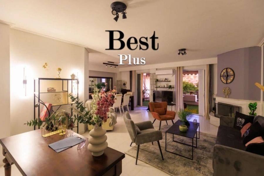 For Rent Apartment, Alimos, Kalamaki, 124 sq.m., In plot 130 sq.m., 4th Floor, 3 Bedrooms, 1 Bathrooms, 1 WC, 1 Fireplace, Floors: Wooden floors + Marble, Frames: Aluminum, 2 parking, Building Year: 1995, Renovation year: Status: Amazing, Certificate Energy: A+, Feautures: Elevator, Security door, Security alarm, Fireplace, Electric Appliances, Playroom, Double Glazed Windows, Balconies, Furnished, Luxury, Penthouse, Roadside, Bright, AirConditioning, Solar water system, Back yard (Garden), Renovated, Autonomous - Electricity Heating, Price: 2.000€ Best Plus Real Estate, For more properties and photos, please visit www.bestplus.gr, Contact Phone: 2109600068