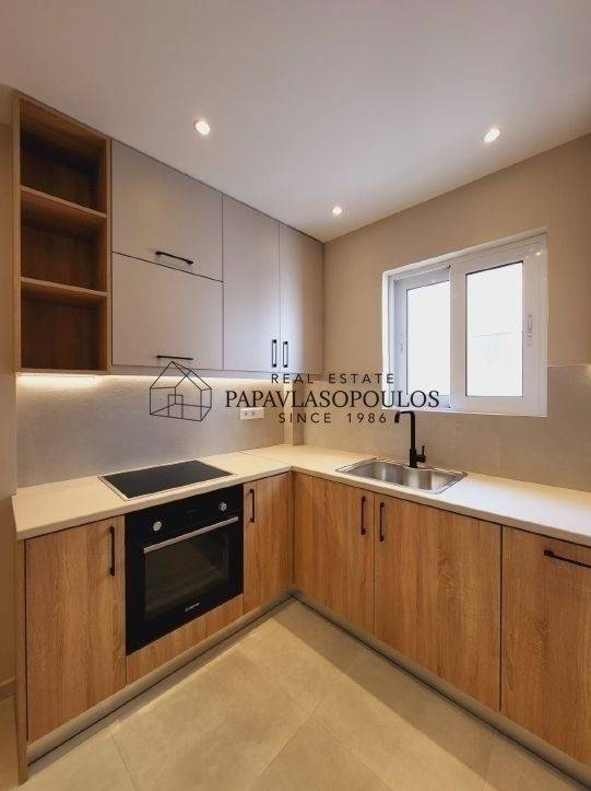 Neo Pgkrati, completely renovated apartment with hi-end materials, 103 sq.m. on the 2nd floor. It consists of a living room area, separated kitchen, 3 bedrooms and a bathroom. It features built-in electrical appliances, a/c, oak floor throughout, led lighting. Papavlasopoulos Real Estate since 1986 T. 2106461211, 6981216001 info@papavlasopoulos.gr