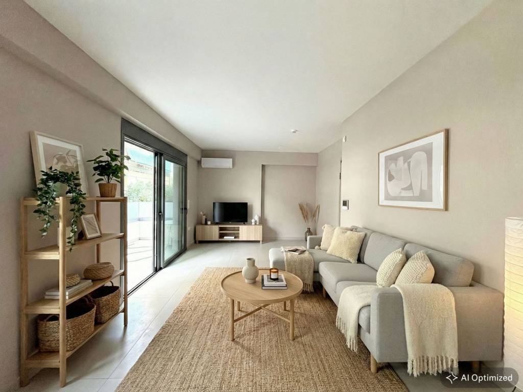 Engel & Völkers presents a newly built full floor apartment for rent, constructed in 2025, in a prime location in Kaisariani. The property is located on the 1st floor and has a total area of 80 sq.m., offering a modern and functional living space. It consists of two comfortable bedrooms with en suite bathrooms, a spacious open-plan living room - kitchen, and a large balcony at the front, as well as a small, auxiliary one that comes out from the bedrooms at the back of the building. It features autonomous natural gas heating, three air conditioners, an alarm system, and a video intercom. The security door, screens, electric shutters, and energy-efficient aluminum frames highlight the quality of construction and the energy efficiency of the property. The kitchen is equipped with a dishwasher, while the apartment is accompanied by an 8 sq.m. storage room in the basement, offering additional storage space. The location of the property is particularly privileged, just 150 meters from Kaisariani Square and Ethnikis Antistaseos Avenue, 700 meters from the University Campus fields, 500 meters from Ymittou Avenue, and 500 meters from the Near East Stadium. This is a quality and modern property that combines excellent construction, high aesthetics, and immediate access to essential infrastructures and points of interest. Kaisariani is a suburb located in the eastern part of Athens. It is known for its beautiful green environment and its proximity to Hymettus. The area features a mix of residences and traditional Greek houses, along with parks, churches, and a small commercial area. Kaisariani is also home to a famous monastery, the Kaisariani Monastery, which is a popular tourist destination. Despite its tranquil atmosphere, Kaisariani is well connected to the center of Athens by public transportation, making it a convenient location for those who want to enjoy the vibrant cultural scene of the city, while also having a place to retreat from the hustle and bustle.