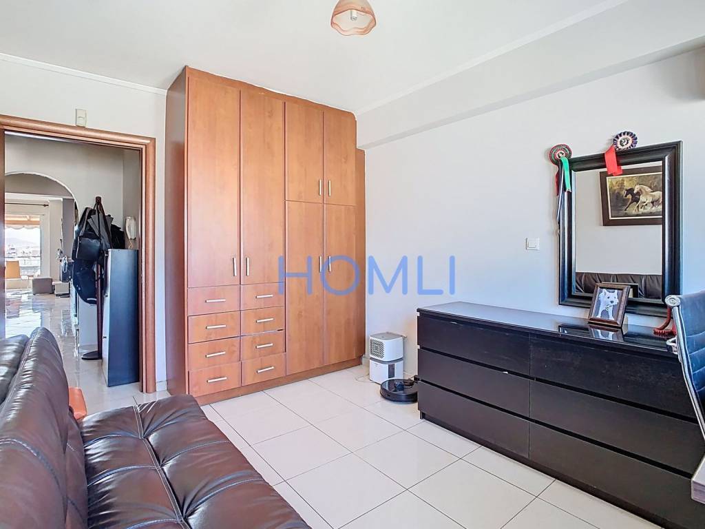 Bright 8th floor penthouse apartment in a quiet neighborhood of Piraeus, with underground parking, large balcony, unlimited view and openness. It was built in 2010, with an excellent layout and quite bright. It has a large elevator, autonomous oil heating, aluminum frames with double glazing, fireplace, solar water heater, 3 air conditioners, alarm, screens, awnings, security door, fiber optic installation and intercom with camera. There is an installed standby for autonomous natural gas heating. In a prime location, just 13 minutes walk from the ''LEFKA'' railway station and just 6 minutes from the ''Top Parks'' shopping mall. HOMLI, property code 11264, contact us by phone at 2104446498.