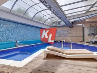 Penteli, Daou Penteli: Νewly built house 360sq.m. 3 levels with indoor heated pool for sale. It consists of 2 houses that have been joined and therefore has two entrances and two marble stairs that connect the three levels with an internal elevator. On the A ground floor there is the dining room, living room with marble energy fireplace, office, kitchen, entrance wc, balconies along the floor plan of the space at 120 m2. On the B ground floor there is a living room with home cinema system for showing movies, marble energy fireplace, kitchen for pool service, two master bedrooms, pool area with independent wc, bar with all equipment (cabinets - refrigerator). The pool area consists of the pool of approximately 70 m2 with hydromassage, heated for the winter, covered by a metal canopy throughout the space that opens in summer to turn the 100 m2 space into an outdoor area. Also next to the pool area with windows opening - accordion, there is a terrace of 50 m2 for the use of the outdoor dining area. The barbecue is located in the indoor area of the pool, for use at any time of year. The area of the B ground floor (120 m2), is located on the same level of the pool and the terrace, and all bedrooms overlook the outdoor garden terrace. On the 1st floor 120 m2, which includes 2 master bedrooms, a small living room, an office space, a master bedroom with two bathrooms (one has a hot tub and the other a hydromassage shower). All rooms have balconies overlooking the sea. Price € 1200,000 Property code: # 3186