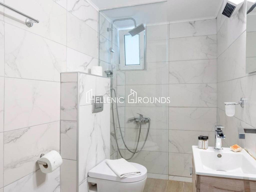 This fully renovated and furnished 50 sq.m. studio apartment in Glyfada offers comfort and functionality in a serene setting. It features one bedroom, one bathroom, double-glazed aluminum frames, tiled flooring, and an energy certificate of class C. Heating is provided through electricity, with additional air conditioning for year-round comfort. The property is designed to stay cool in the summer and warm in the winter, enhanced by thermal façade insulation. Residents also benefit from access to a shared garden, creating a peaceful retreat while being close to the amenities of Glyfada.