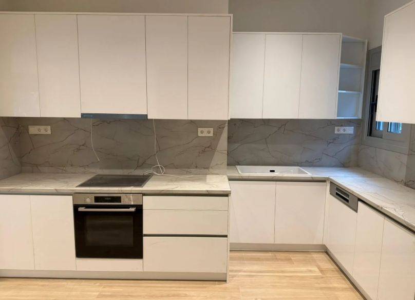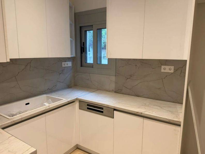 A renovated ground-floor apartment of 115 sq.m. is available for rent in the Marousi – Neo Terma area. The property consists of three bedrooms, one of which is a master bedroom with an en-suite bathroom, a total of two bathrooms, a kitchen, dining area, a spacious living room, as well as a separate laundry room, offering a high level of comfort and functionality. It features autonomous oil heating, air conditioning, aluminum window frames with double energy-efficient glazing, a security door, storage space, and tiled and laminate flooring. The kitchen is equipped with built-in electrical appliances (oven and dishwasher). Additionally, the property includes a covered outdoor parking space and a private garden with trees. The apartment is freshly painted, corner, front-facing, and bright, with an east-facing orientation and views of greenery and open space. Its modern and luxurious character makes it an ideal choice for high-quality living in a quiet neighborhood. It is located in an excellent area, close to public transportation, parks, squares, shopping areas, and dining options. The indicated location is approximate. For more information or to schedule a viewing, please contact: KOSMOS REAL ESTATE Property Manager: Alexis Kosmopoulos – +30 6986109593 info@kosmosrealestate.gr www.kosmosrealestate.gr