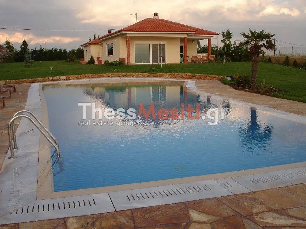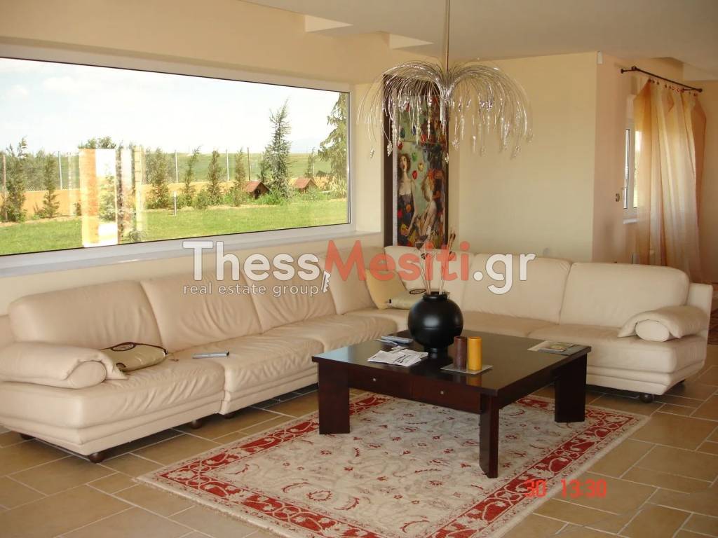 Villa For sale, floor: Ground floor, in Epanomi. The Villa is 365 sq.m. and it is located on a plot of 7.000 sq.m.. It consists of: 5 bedrooms, 4 bathrooms, 1 kitchens, 2 living rooms and it also has 1 parkings (1 Open). The property was built in 2002. Its heating is Personal with Oil, Air conditioning are also available, it has Alluminum frames with Double glazed windows, the energy certificate is: B and its floors are Tiles. The Villa is Painted, Furnished, With Facade, Bright, Airy, Sunny, Airy, Luxury, it is suitable for Short term Rentals, Investment and it also has the following unique features and advantages: Jacuzzi, Storage, Swimming pool, Garden, Security door, Security alarm, Playroom, Grass, Trees, Quiet neighborhood, Porch, Gym. Price: €850.000. ThessMesiti.gr, contact phone: 2310200010, 6976818544, email: ThessMesiti@gmail.com, website: