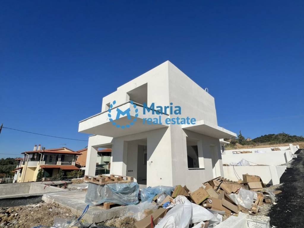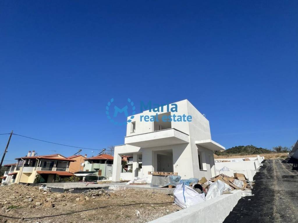 PROPERTY CODE 14455 For sale a detached house of 92.00 sq.m. with a yard of 493 sq.m. in Paralia Karyanis Kavala. It consists of a ground floor, living room with kitchen, bathroom, and bedroom, and with an internal staircase we ascend to the first floor where there are two bedrooms and a bathroom. It features aluminum frames, armored door, automatic irrigation system for the yard, swimming pool. Energy class A. The detached house is located in a complex of 7 luxury detached houses with a swimming pool. Distance from the sea 170 meters.