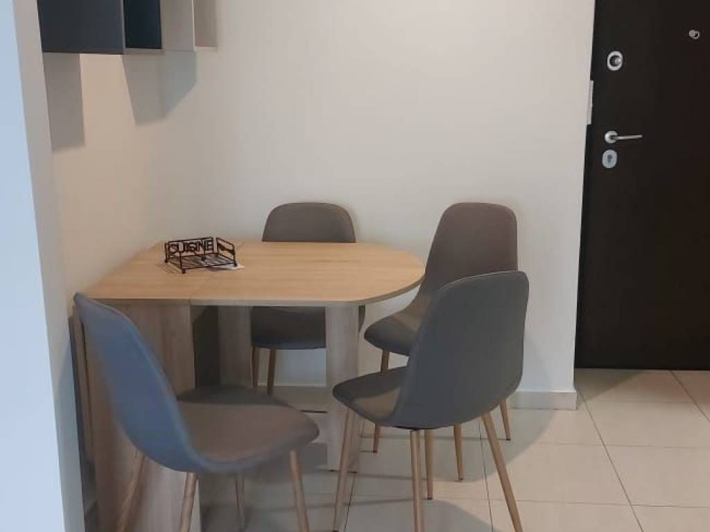 Penthouse two-room apartment on the 3rd floor, frontage, with northwest orientation and balcony on the Triton stadium. Renovated in 2019, available fully furnished with only air conditioning as heating. It has a security door, aluminum frames, screens, awnings and easy access to the terrace. Quiet and sunny. It has direct access to public transport (Sepolia metro station line 2 - 10' walk) and the national road. Bank ATMs, supermarkets, taverns and entertainment venues in very close proximity. The apartment building does not have an elevator.