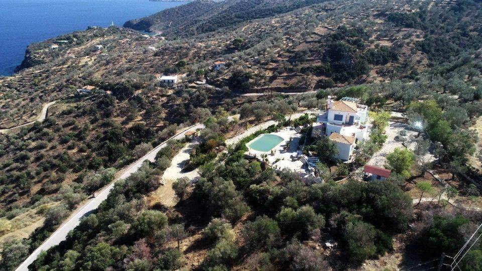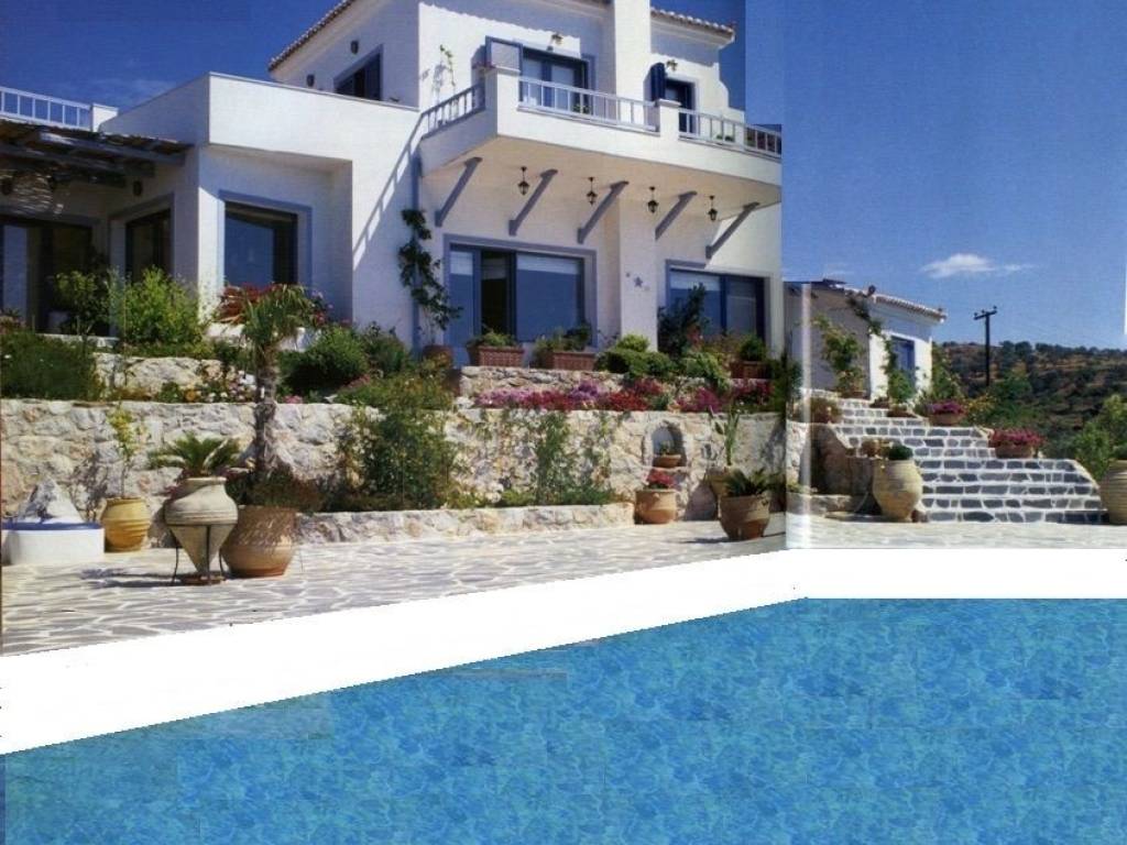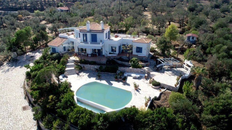 FOR SALE | “Endless Blue” Villa – Panoramic Sea Views near Galatas & Poros A truly exceptional hillside villa, set in an amphitheatrical position and offering breathtaking panoramic views over Hydra, Poros and the endless blue of the Aegean Sea. Designed in a refined Cycladic island architectural style, this unique property combines distinctive character, quality interiors and absolute privacy—ideal for unforgettable family holidays or a prestigious retreat. The villa is set on a lush, landscaped plot of 4,362 sq.m., planted with olive, orange, lemon and mulberry trees, as well as pine trees, and benefits from its own water borehole. Throughout the property, stone-paved courtyards, traditional stone fountains, a treehouse, and carefully designed outdoor spaces create a rare atmosphere of harmony with nature. ✨ Property Overview Main residence: approx. 193–250 sq.m. Levels: 3 Bedrooms: 3 Bathrooms: 3 Year of construction: 2000 Energy class: C Distance from the sea: approx. 500 m Layout & Spaces Ground Floor Living room with fireplace Dining area & fully equipped kitchen 1 bedroom & 1 bathroom Small storage room Floors and courtyards finished with traditional Karystos stone Independent Guest House Approx. 35 sq.m., with private entrance Ideal for guests or staff First Floor Impressive master bedroom (~40 sq.m.) Fireplace & small kitchenette Expansive terraces with stunning sea views Basement Level (approx. 100 sq.m.) Boiler room (autonomous oil heating) Parking area Large storage space Outdoor Living Infinity swimming pool with panoramic views BBQ area with outdoor living space Stone-paved verandas Landscaped garden with trees and flowers Features & Amenities Sold fully furnished and equipped with electrical appliances Fireplaces & air-conditioning Autonomous oil heating Aluminium window frames Internal staircase Parking space Tri-phase electricity Asphalt road access Bright, airy, dual-aspect residence Pet-friendly Location 10 minutes’ drive to Galatas town and Poros Island Approx. 2 hours drive from Athens International Airport Many places to visit at close distances : Hydra island 15 minutes, Porto Cheli - Ermioni - Koilada golf at 35 minutes, Methana spa town and Vathy fishing village at 35 minutes, Epicurus at 40 minutes, Nafplion historic town at 1 hour drive and the rest of the magnificent Peloponnese at your feet ! Close to beaches and coastal attractions Price: €2,500,000