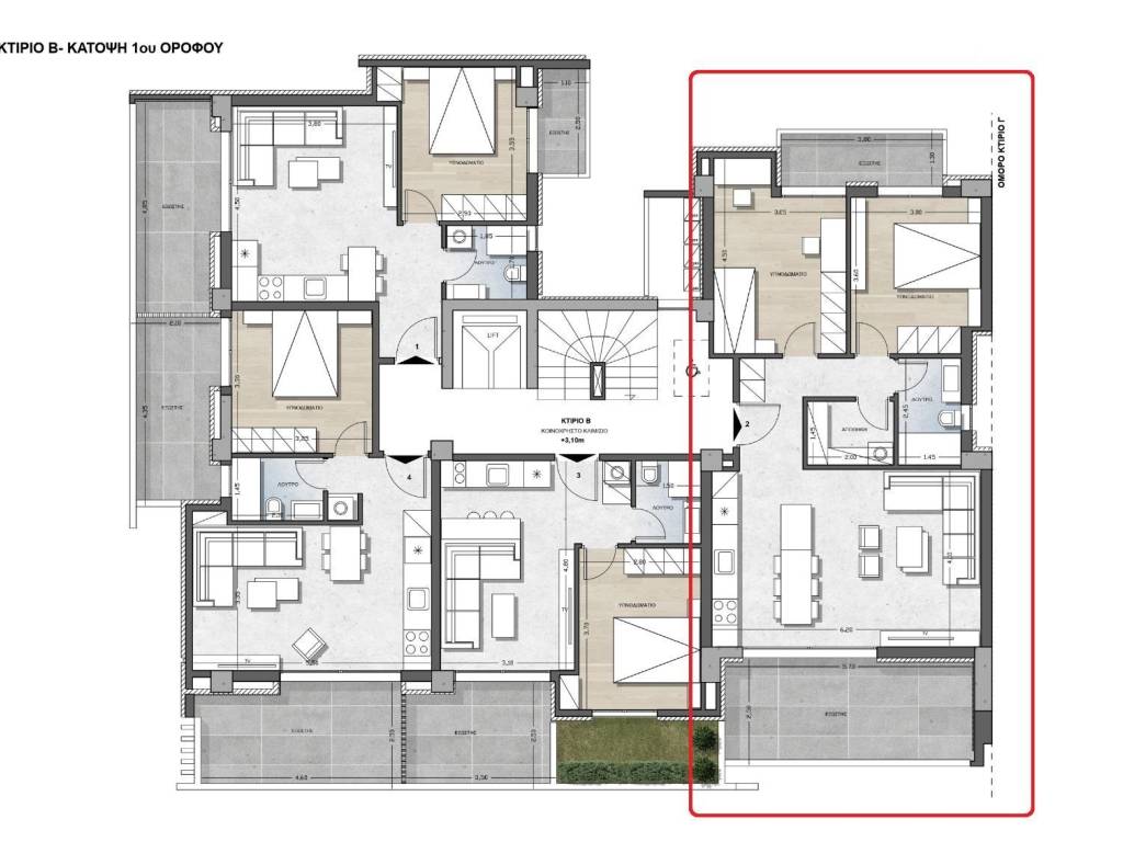 Appartement 3 chambres neuf, premier étage, Centre, Thermi