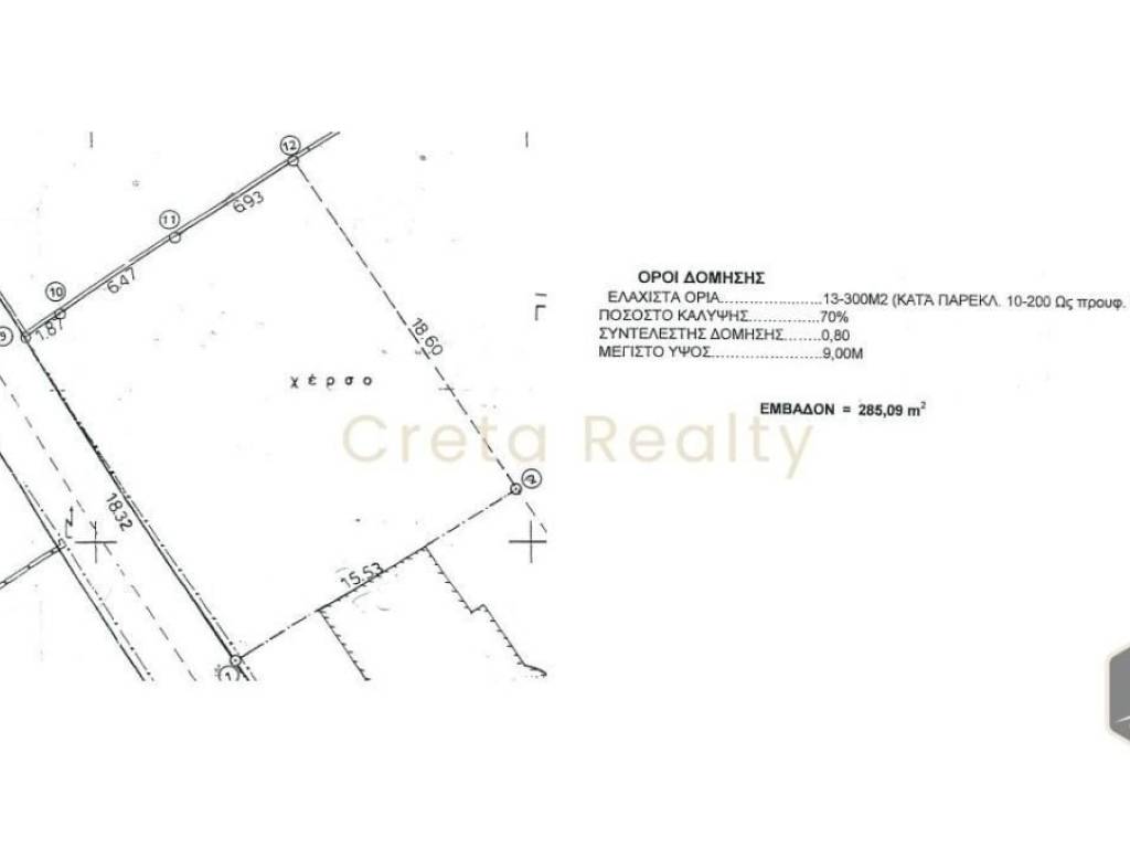 Κωδικός ακινήτου: 1-357 - Ηράκλειο Κρήτης Μεσαμπελιές ΠΩΛΕΙΤΑΙ επίπεδο οικόπεδο συνολικής επιφάνειας 285.00 τ.μ. με συντελεστή δόμησης: 0.80 και συντελεστή κάλυψης: 70.00 Διαθέτει απόσταση από θάλασσα 4000 μέτρα Τιμή: 165.000 €