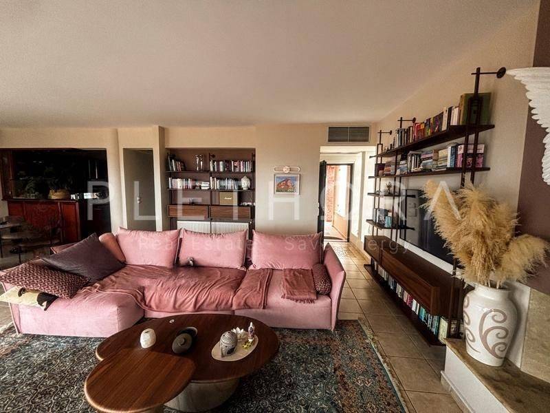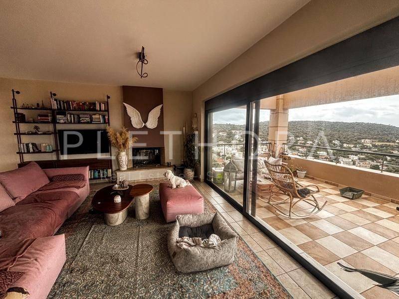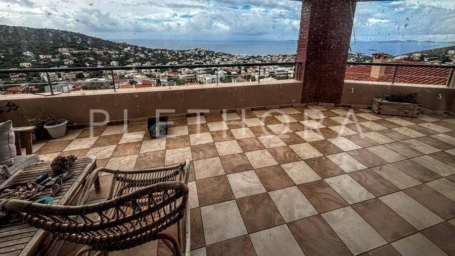 Saronida - Tangent Maisonette 196sqm plot 200sqm, bedrooms 4, master bedroom, levels 3, ground floor (living room, dinning room, kitchen, wc) - 1st (3 bedrooms, bathroom) - rooftop room, excellent condition, year built 2010, renovation year 2024, energy class B, living room, kitchen, 2 bathrooms, wc, heating type: autonomous (oil), air condition, quiet, dual aspect apartment, luminous, sea view, frontage, painted, storage space, solar heater, fireplace, balconies, large balconies, tents, elevator, garden, garden 100sqm, aluminum frames, double glazed windows, door screen, ceramic tiles floors, three phase electricity, night electricity discount rate, secure door, alarm, video doorbell, luxurious, internal staircase, internal elevator, pets allowed, residential zone, southern orientation, access from asphalt, investment property, close to sea (up to 1500m), close to market (up to 1500m).