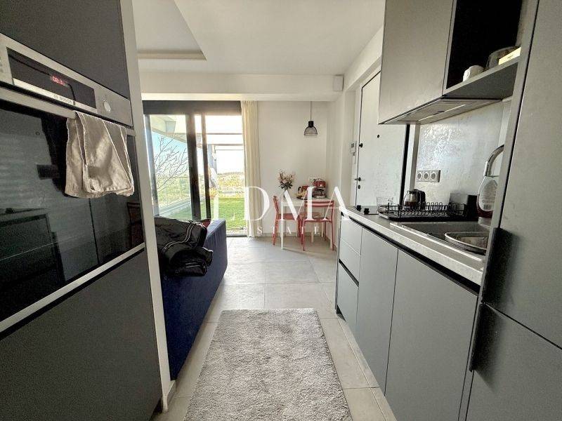 Spanning 49m², the apartment offers a thoughtfully designed layout featuring a comfortable bedroom with a built-in closet, a sleek modern kitchen with high end appliances , and a bright living area with large aluminum sliding doors that flood the space with natural light.