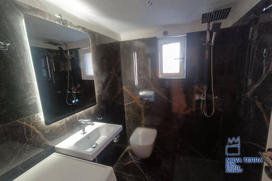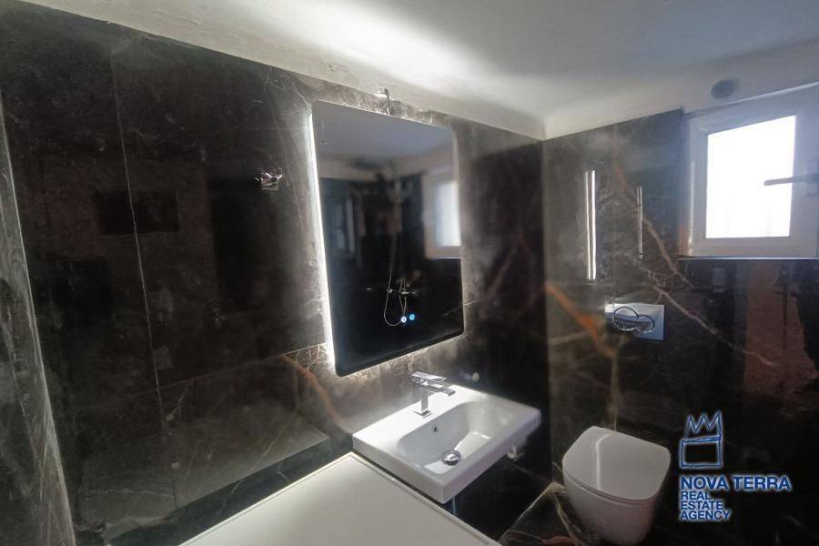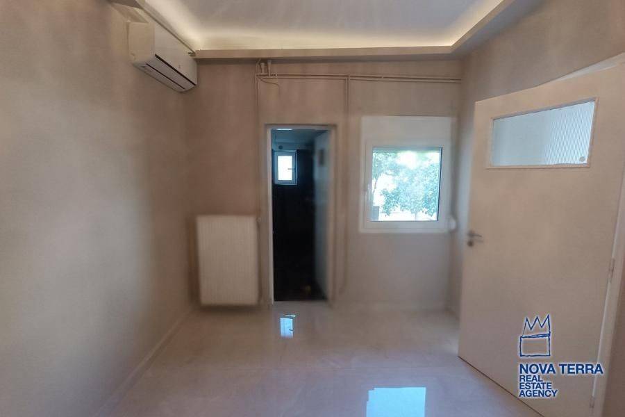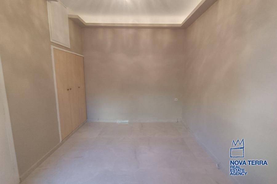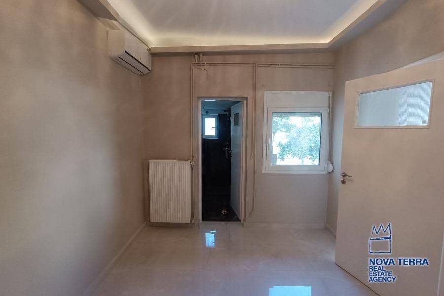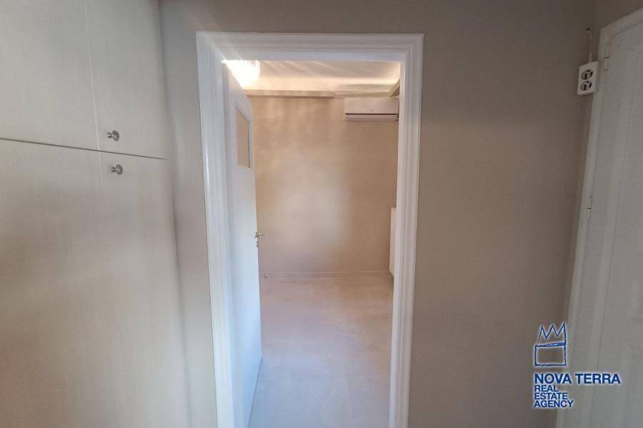 Luxury apartment for rent in Glyfada Ano, featuring 1 room, balcony, renovated in 2026, with marble flooring and air conditioning. This bright and spacious apartment is in perfect condition and includes various amenities such as a bath, kitchen, and living room. Don't miss out on this opportunity - property ID: 52972. Visit www.nova-terra.gr for more information.