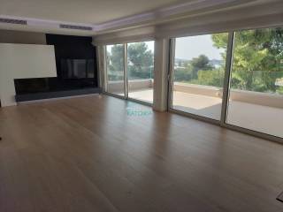 Vouliagmeni center in excellent location walking distance to the beach and the square, luxurious uper 2nd floor apartment, very bright, fully renovated. Offers living room with wooden floors, fireplace and beautiful view, greenery and partly sea, open plan kitchen with electrical appliances, 3 master bedrooms, 3 bathrooms, 2 wc, laundry, autonomous heating and cooling system, solar panel, double glazing, aluminum frames, electrical shutters, net, security alarm system and door, hidden lights, big balcony at the frontage.The property is immediately available,code 58439