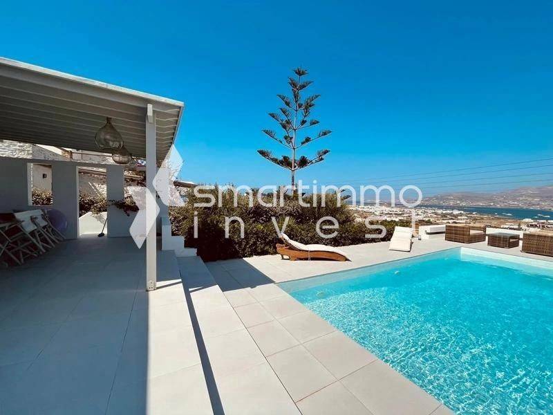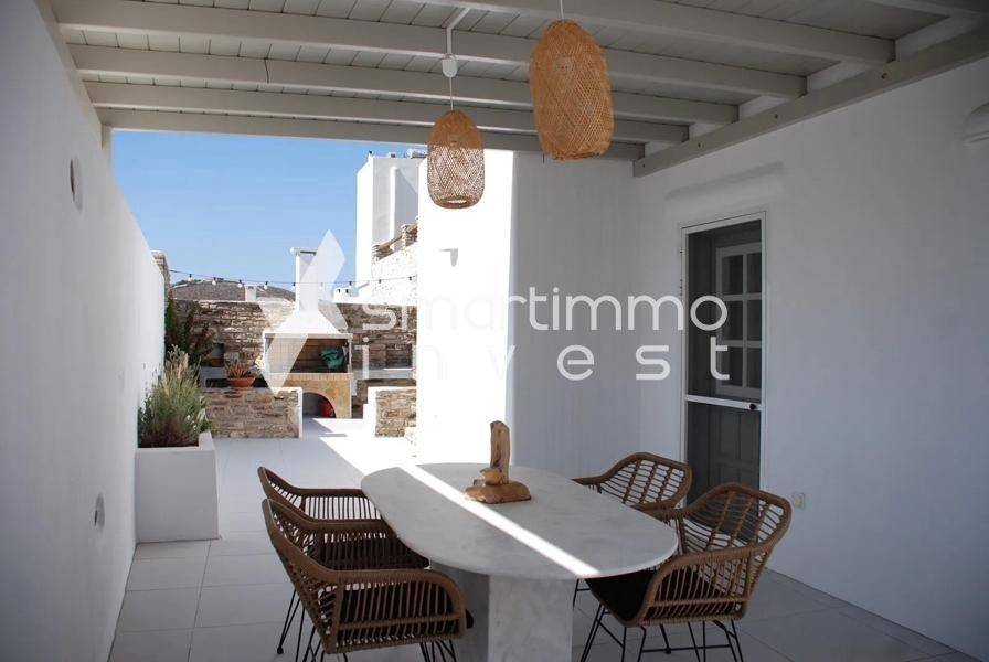 A unique villa of 110 sq.m. set on a private plot of 4,000 sq.m., located in a prime spot in Chora, Antiparos, with unobstructed views of the Paros–Antiparos channel and close proximity to the town center. The property is developed on a single level and can operate either as a unified villa or as two independent residences, offering great flexibility for private use or rental income. It features 2 bedrooms, 2 bathrooms, 2 living rooms, a spacious open-plan kitchen, shaded verandas with outdoor seating, a BBQ area, storage spaces, and a private pool with panoramic sea view. ✅ Fully furnished and equipped – includes air conditioning, autonomous oil heating, solar water heater, security door, insect screens, internet, outdoor parking, and landscaped garden. Just a few minutes from the town and port, with ideal east-facing orientation and absolute tranquility.