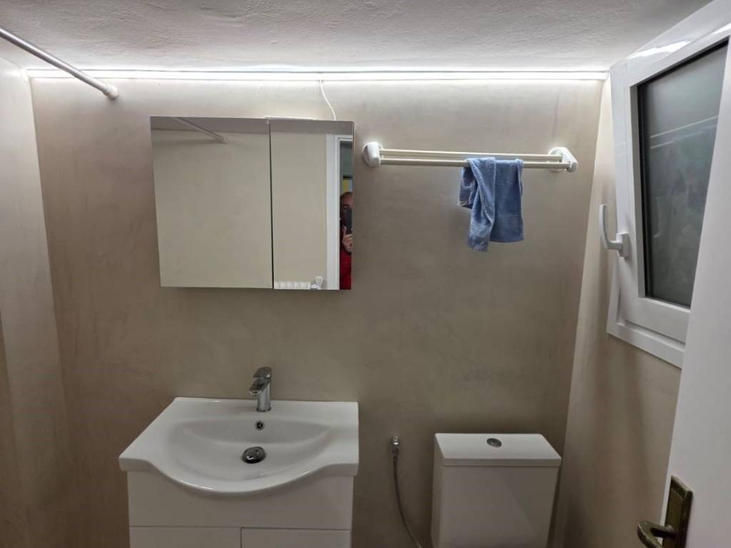 Ενοικιάζεται πλήρως ανακαινισμένη φωτεινή γκαρσονιέρα(2026) , 34m2 με χωλ μια κρεβατοκάμαρα με μπαλκόνι, μπάνιο με πατητή τσιμεντοκονία κουζίνα με εγκατεστημένες εστίες πόρτα ασφαλείας άμεσα διαθέσιμη