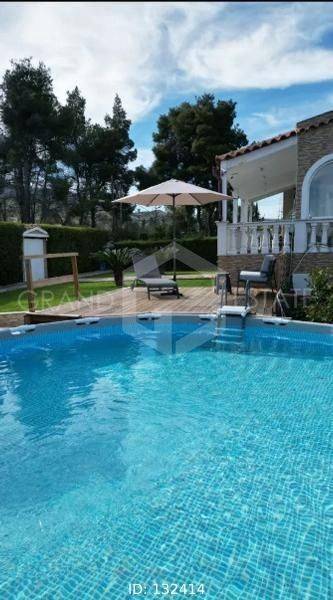 AFIDNES (KIOURKA), Kosmothea - Villa 320sqm on a plot of 5200sqm, 4 bedrooms, 2 levels: ground floor-1st, excellent condition, built in 1995, renovated in 2024, energy class C, 2 living rooms, 2 kitchens, 3 bathrooms, wc, autonomous heating (LPG), air conditioning, one closed parking space, quiet, bright, corner, open horizon view, facade, storage room, fireplace, large verandas, garden, aluminum frames, double glazing, marble flooring, night power, security door, alarm, underfloor heating, swimming pool, internal staircase, playroom, guest house, pets allowed, within the plan, residential zone, access: asphalt, near mountain (up to 500m), near super market (up to 500m). Detached house of excellent construction with a total area of ​​the plot is 5200 m2. Of these 4 acres are olive trees and the rest is the detached house with a garden around it. The field from the house has a separate fence. It has air conditioning, underfloor heating, a swimming pool, all the floors are marble, it has a borehole, the heating is with LPG and there is a 2-ton tank. Price €420,000 (code 132414) +30 2109229965 GRAND ESTATE | The point on the map does not indicate the exact location of the property but a point near it. See more properties on our site www.grandestate.gr