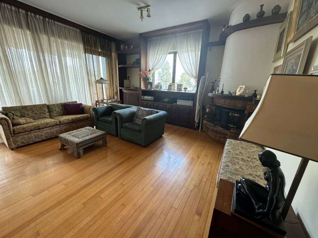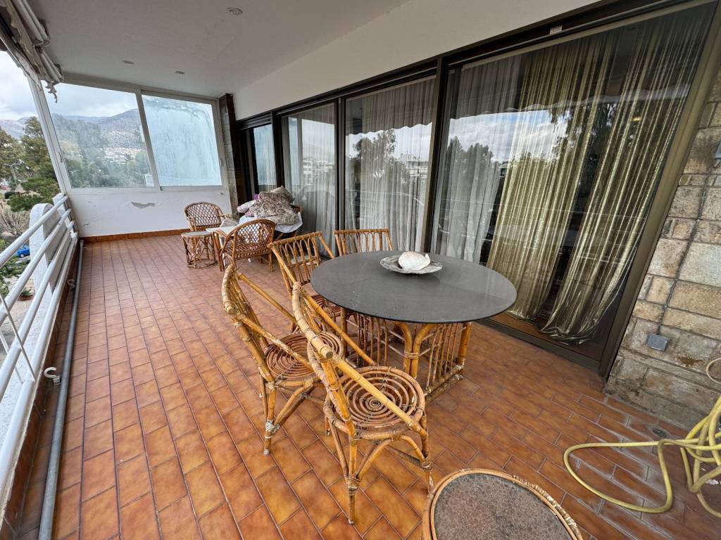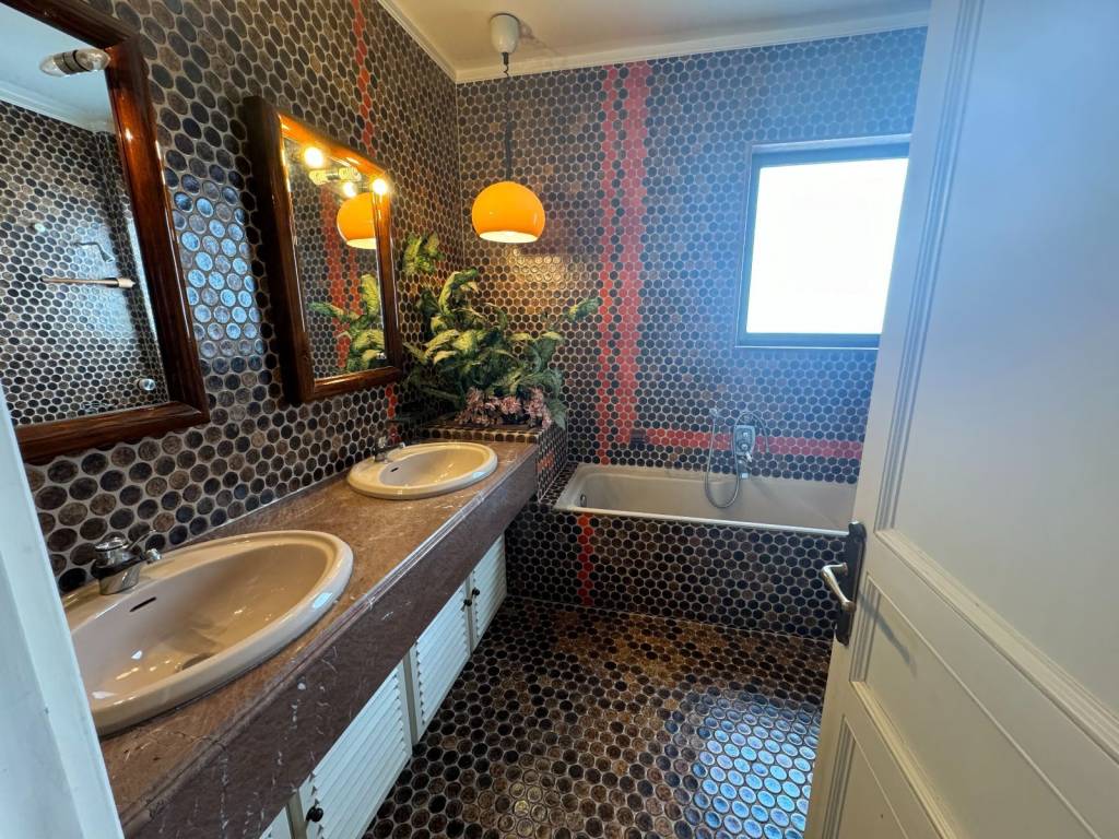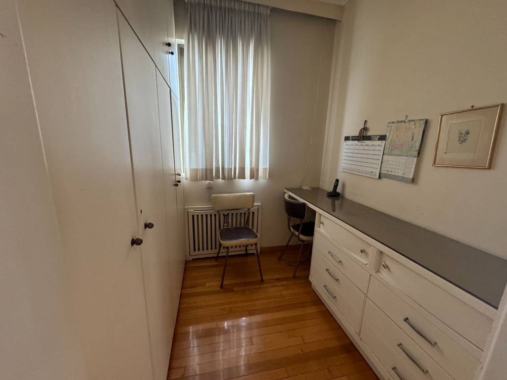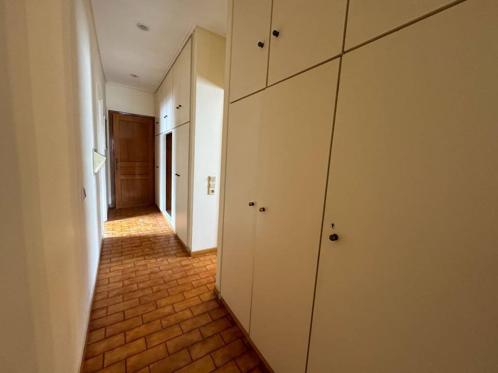 For sale is a unique bright 131 sq m fourth floor apartment, penthouse in the heart of Glyfada plus a garden house in the same apartment building, independent, 20 sq m. A property in a prime location in the center of Glyfada, 400 meters from the sea and next to shops, restaurants, gyms, supermarkets, beauty centers, etc. As we enter the apartment we encounter the living-dining room area, 45 square meters, particularly bright as it has openings (balcony doors and windows) on three sides, on the facade of the building but also on the right and left. There is a corner fireplace, oak floors, security door, air-conditioning and wood paneling in many places. The front balcony overlooking one of the most central streets of Glyfada is 22 square meters and offers an unlimited view. Entering the rest of the house we will see the hallway that is full of storage spaces and closets. On the right is the kitchen with access to this room on the balcony, we continue with two bathrooms of special aesthetics, a separate office room and finally we end up with the two bedrooms that adjoin the back balcony. Two spacious rooms with closets, oak floors and air conditioning. The back balcony is equally large and with a view of the mountain. In the house there is an underground storage room of 38 square meters and a separate studio of 20 square meters located in the garden at the back of the apartment building and is configured as follows: kitchen room, bathroom and an open space with closet. Along with the house, a closed parking space is also given in the apartment building for an additional fee.