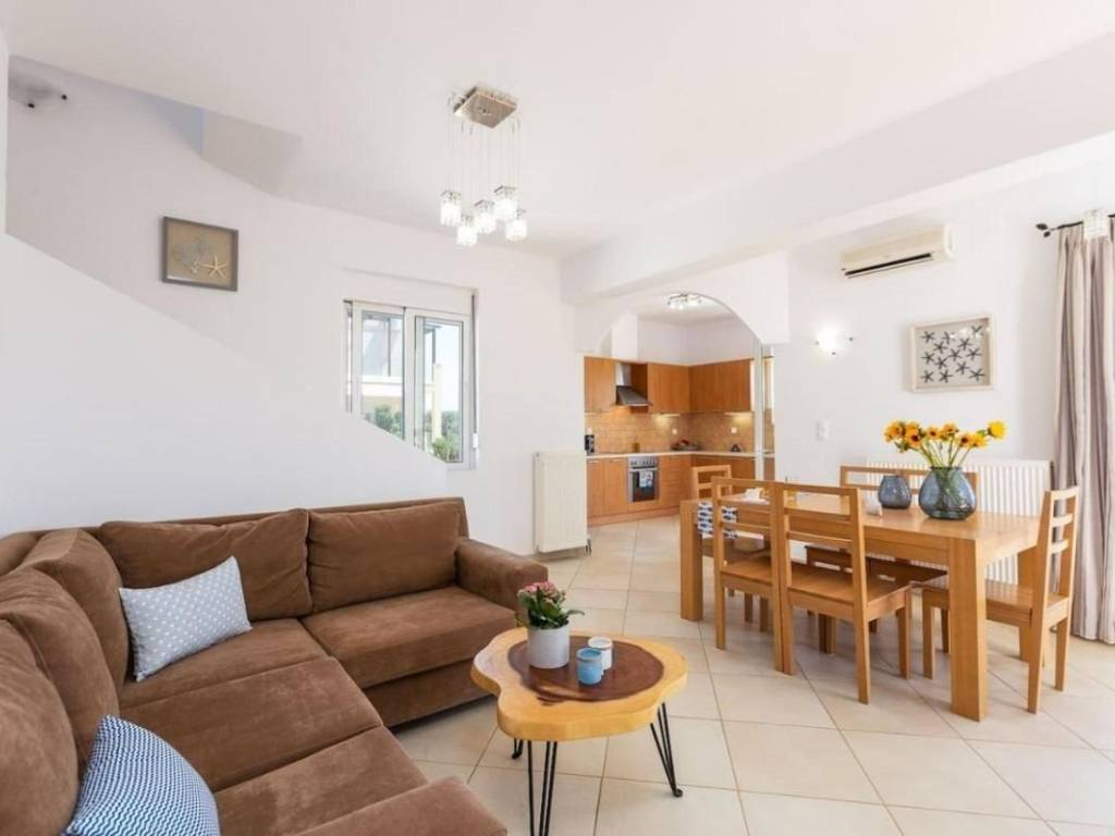 Lake and Sea View Villa for sale in Kournas. We are pleased to present this magnificent villa located in the picturesque village of Kournas, offering breathtaking views of the sea, the impressive Lake Kournas, and the surrounding mountains. Set on a generous plot of 3,700 m², this 200 m² villa represents luxury living in harmony with nature. The property consists of a maisonette and a ground-floor apartment, each with independent entrances, offering flexible living arrangements suitable for permanent residence, holiday use, or rental investment. Ground-Floor Apartment The ground-floor apartment features a spacious open-plan layout with a kitchen, living room, and dining area.