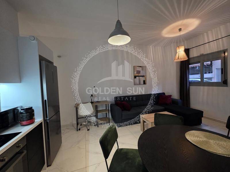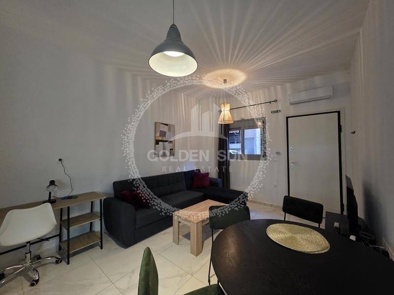 Neos Kosmos - Apartment 50sqm fully furnished, bedroom, levels 1, ground floor, excellent condition, year built 2024, energy class C, living room, kitchen, bathroom, heating type: autonomous, air condition, quiet, dual aspect apartment, frontage, boiler, balconies, garden, built in appliances, aluminum frames, double glazed windows, ceramic tiles floors, night electricity discount rate, secure door, video doorbell, residential zone, southern orientation, access from asphalt.