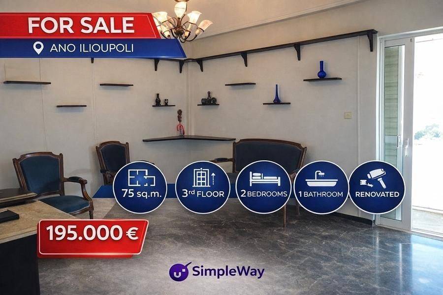 Ilioupoli - Apartment 75sqm bedroom, levels 1, 3rd, renovated, year built 1974, renovation year 2008, energy class E, living room, kitchen, bathroom, heating type: central (oil), air condition, luminous, solar heater, tents, elevator, aluminum frames, double glazed windows, wood & marble floors, night electricity discount rate, alarm, residential zone.