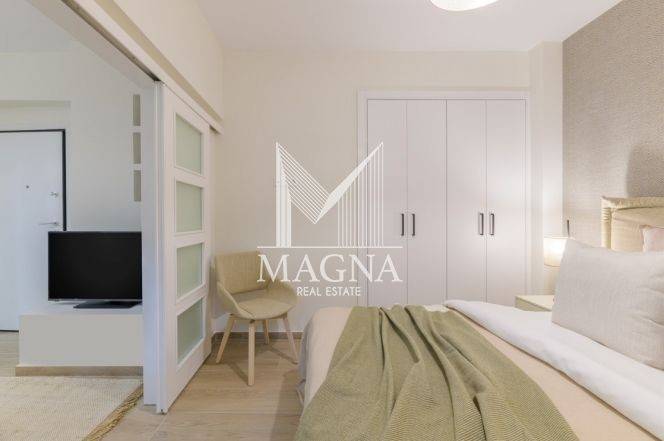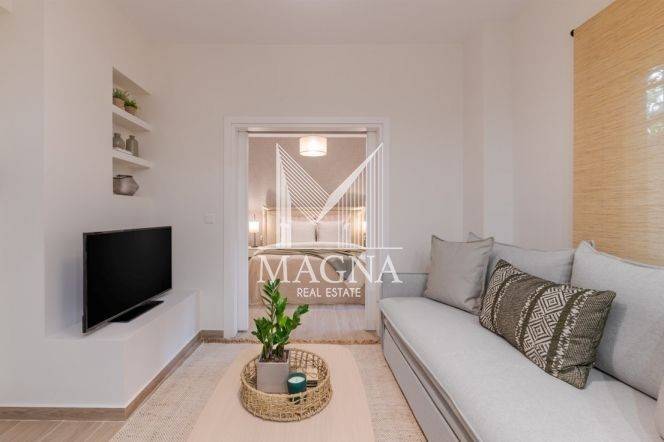 Luxurious apartment, bright semi-basement, 39 sq.m., in Pagrati. It consists of 1 bedroom, living room with open kitchen and bathroom. The property is recently renovated and fully equipped. It is located in a very good location close to transportation and the center of Athens. It is located in an excellent spot, near Kallimarmaro. It operates on Airbnb with a yield of 8.63%.