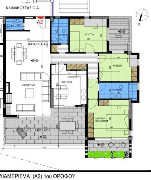 Kifissia - Apartment 140sqm bedrooms 3, master bedroom, levels 1, 1st, newly built, year built 2024, energy class A+, living room, hall, kitchen, 2 bathrooms, wc, heating type: autonomous (heat pump), air condition, parking covered, quiet, dual aspect apartment, luminous, frontage, electric roller shutters, storage space, solar heater, boiler, external thermal insulation, fireplace, balconies, elevator, thermal shut-off frames, double glazed windows, wood & tile floors, three phase electricity, night electricity discount rate, secure door, alarm, video doorbell, under floor heating, swimming pool, private pool, ev charger, residential zone, close to metro/train (up to 500m).