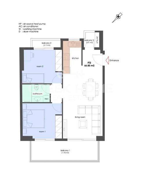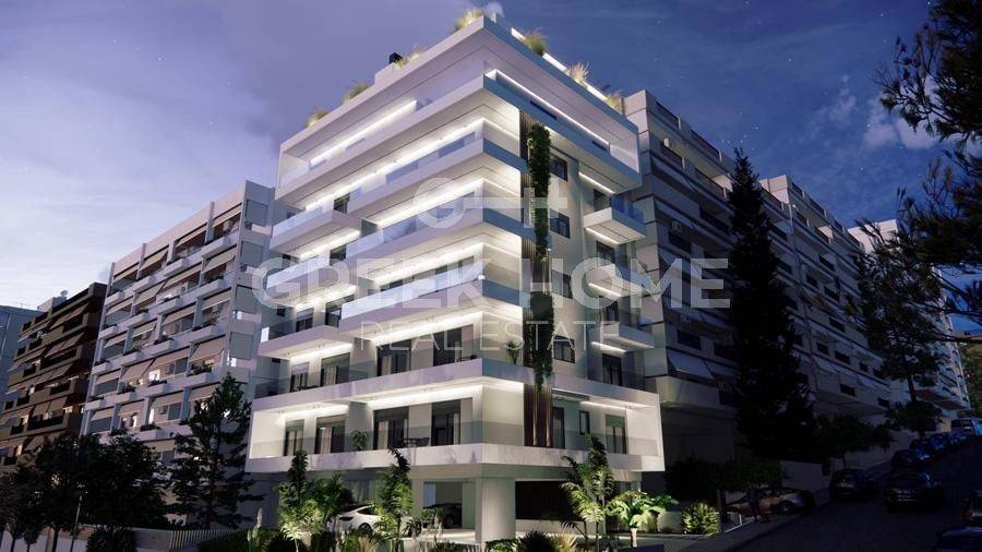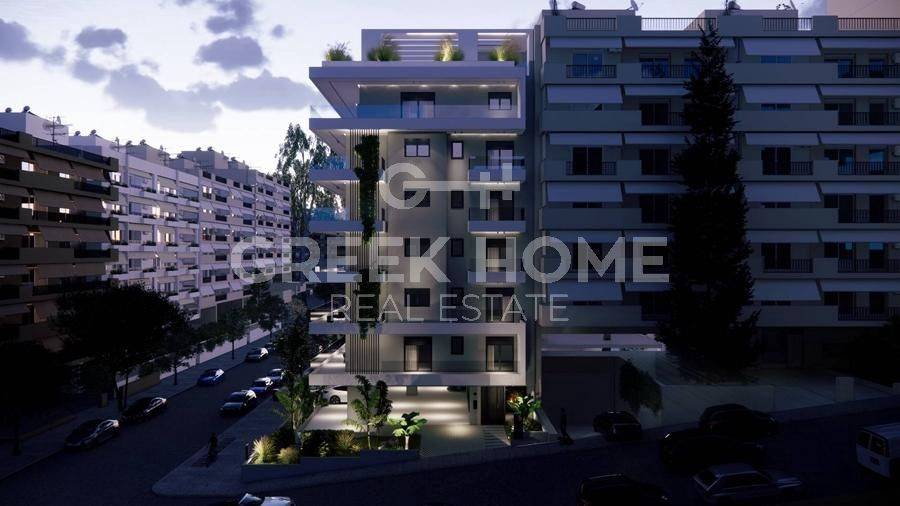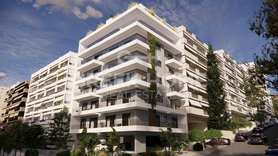 Nea Smyrni - Apartment 67sqm unfurnished, bedrooms 2, 2nd, under construction, constructionstage concrete, year built 2025, energy class A, living room, kitchen, bathroom, heating type: autonomous (heat pump), air condition, parking ground floor, quiet, dual aspect apartment, luminous, corner, unobstructed view view, frontage, electric roller shutters, storage space 4sqm, solar heater, external thermal insulation, balconies, large balconies, balcony 20sqm, tents, elevator, thermal shut-off frames, double glazed windows, door screen, wood & tile floors, secure door, alarm, video doorbell, internet, price is negotiable, special offer, close to square (up to 500m), close to park (up to 200m).
