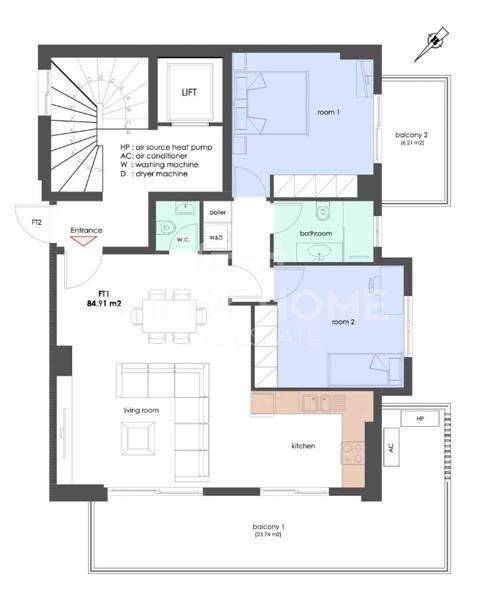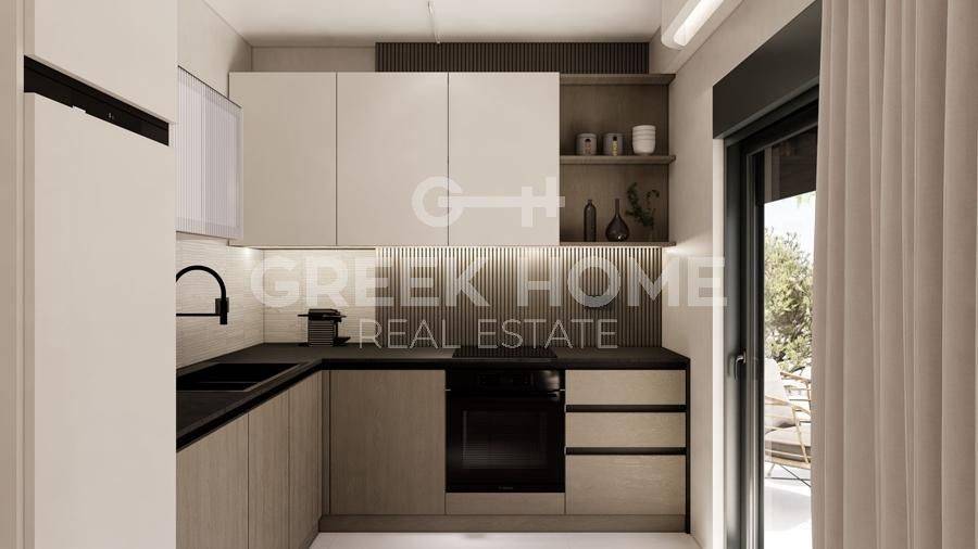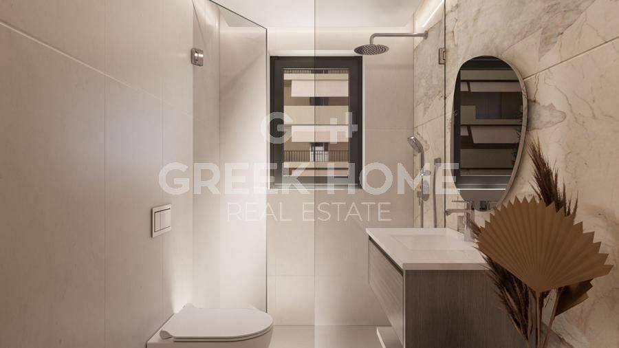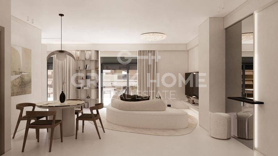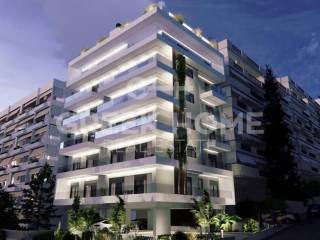 Nea Smyrni, Agia Fotini - Apartment 85sqm unfurnished, bedrooms 2, 5th, under construction, constructionstage concrete, year built 2025, energy class A, living room, hall, kitchen, bathroom, wc, heating type: autonomous (heat pump), air condition, parking covered, quiet, dual aspect apartment, luminous, corner, unobstructed view view, frontage, electric roller shutters, storage space 6sqm, solar heater, boiler, external thermal insulation, balconies, large balconies, balcony 30sqm, tents, elevator, thermal shut-off frames, double glazed windows, door screen, wood & tile floors, handicap ramp, secure door, alarm, video doorbell, internet, price is negotiable, special offer, close to park (up to 200m), close to square (up to 500m).