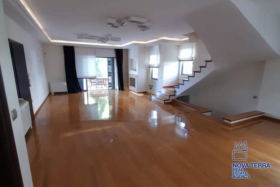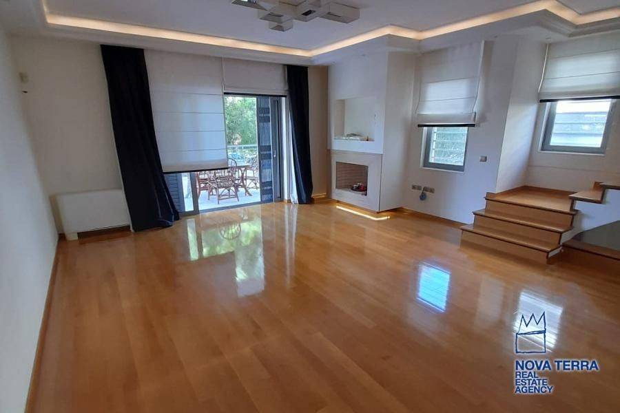 GLYFADA, Duplex / Triplex Apartment, 270 sq.m, year built 2016, 4 rooms, Basement, Ground Floor, 1st, View: Woodland, Various Characteristics: Balcony, Bath (2), Escalator, Fire Place (2), Garden, Store Room, Flooring: Wooden floor, Heating: Autonomous Heating, From Side to Side, Luxury, Newly built, Security Door, : : Parking area: Garage (2), property ID: 42981, www.nova-terra.gr