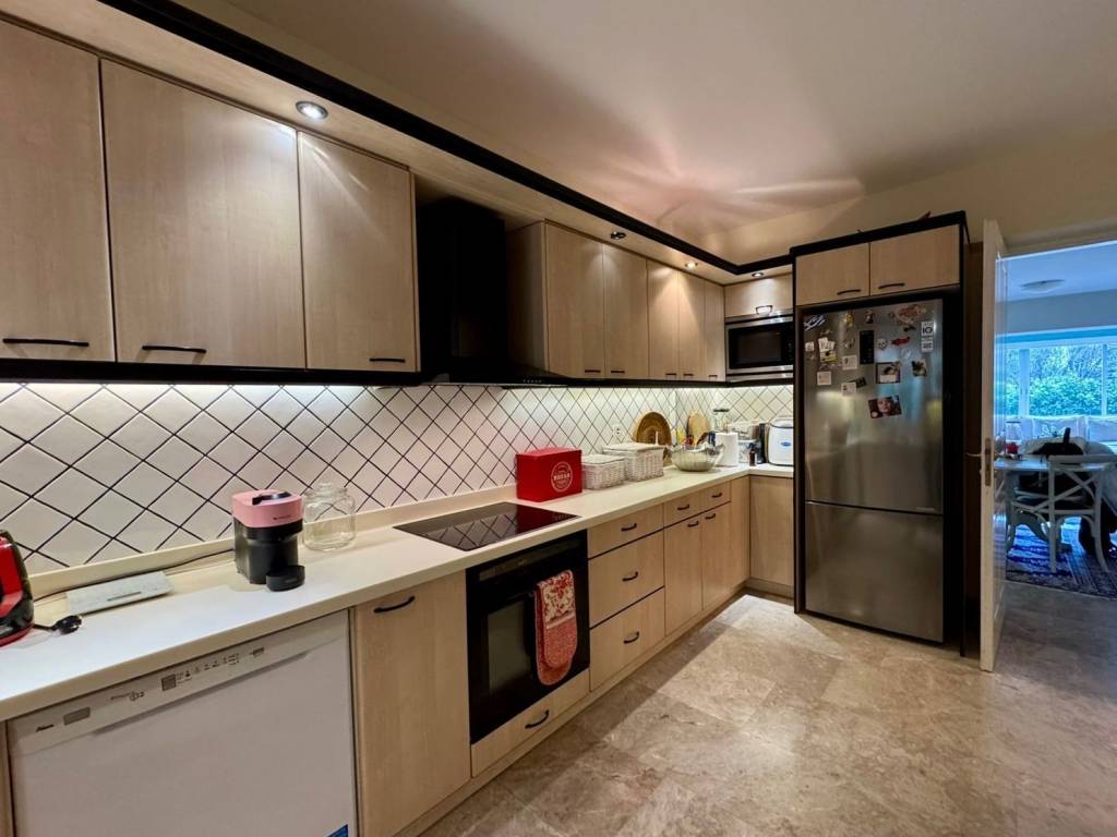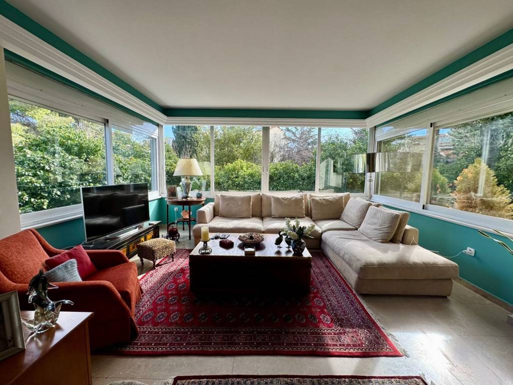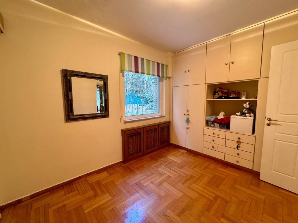 Spacious, renovated ground-floor apartment of 160 sq.m., perfect for a family, located in a quiet and beautiful neighborhood close to the market of Nea Erythraia and the Politeia area. The apartment features three large bedrooms, a bathroom, a separate WC, a fully equipped kitchen with built-in appliances, and a bright, expansive living-dining area with a fireplace. There is also a home office and air conditioning installed in all rooms. The property includes a beautifully landscaped garden of 150 sq.m., a large ground-floor storage room of 15 sq.m., and two parking spaces in a pilotis. Heating is independent, with its own boiler and oil tank. Available from April 1st.