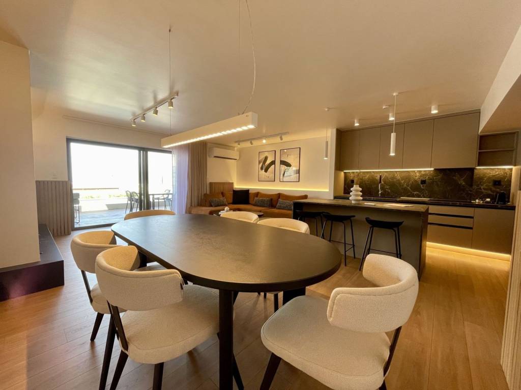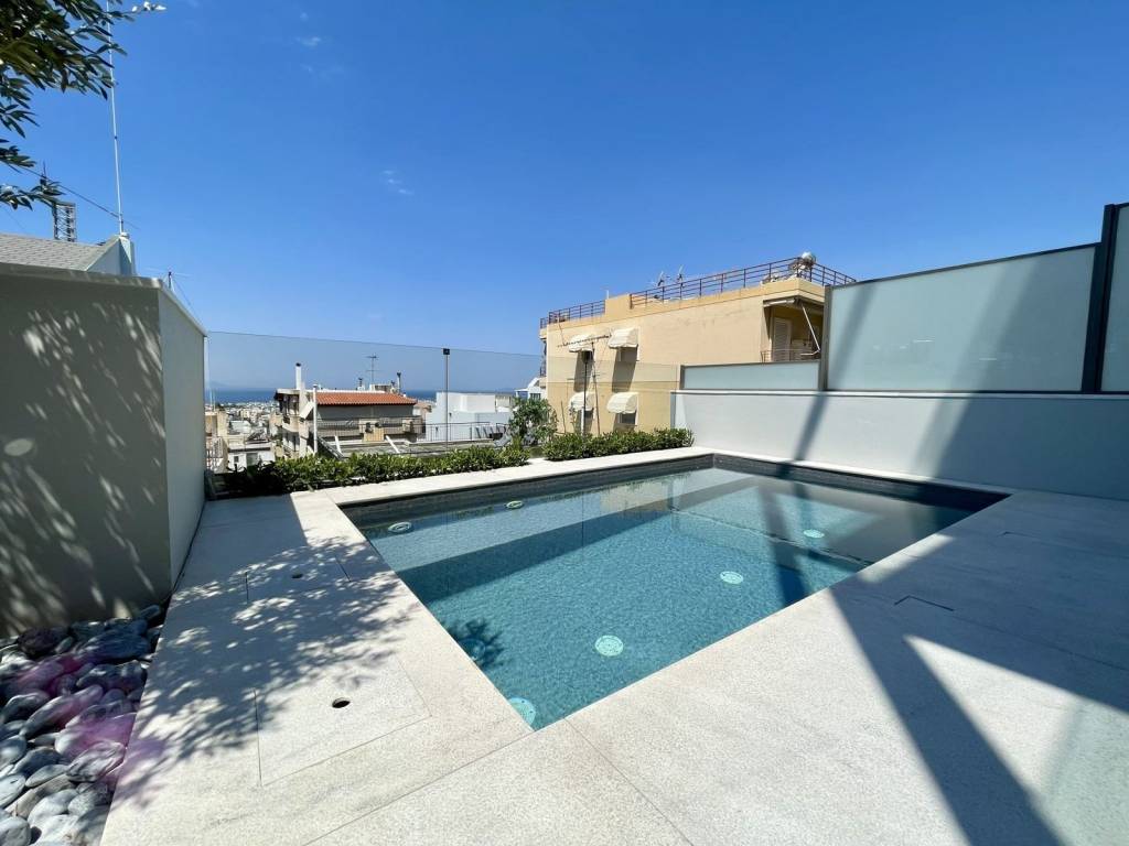 Engel & Völkers proudly presents this exceptional duplex apartment that combines elegance, comfort, and modern living. On the ground floor, an open space seamlessly connects the living room with a cozy fireplace, the dining area, and a fully equipped kitchen. There's also a convenient guest WC. Large sliding glass doors lead to a spacious terrace with outdoor furniture and a small pool with jacuzzi jets, offering a luxurious retreat. Upstairs, you'll find two spacious master bedrooms, each with a balcony offering stunning views. The beautifully renovated apartment features modern furniture and wooden floors, adding warmth and sophistication. A VRV system provides precise temperature control for year-round comfort, complemented by central heating with independent control for energy efficiency. An alarm system ensures security and peace of mind. A storage area offers valuable space for organization, while the underground garage provides secure parking for one car. The apartment combines luxury, functionality, and security to meet the needs of discerning residents. Location: Glyfada is the commercial hub of the Athens Riviera, with bustling retail by day and vibrant nightlife by dusk. It is a fashionable shopping destination with a complementary mix of concept boutiques and high-end retail. Fringed on one side by Athens’ only 18-hole golf course, with a walking and biking track encircling it, Glyfada promises the best of all worlds. Unique features: An upscale coastal address with easy access to beaches, cafes, restaurants, summer beach bars, and clubs. Glyfada is close to international schools and a safe environment to raise children, offers great returns on investment and boasts many possibilities for entertainment, fitness activities and sports. It has cinemas, fashionable boutiques, restaurants that cater to every taste and budget, bars, a vibrant outdoor life and one of the largest marinas along the coast. Accessibility: Glyfada is well connected to the city centre and the coast by metro, tram and bus services, and it is just a 30-minute drive to Piraeus Port, offering a quick getaway to the islands. Glyfada is just a 35-minute drive away from the international airport. Investment potential: Glyfada has always been attractive to real estate investors, and with the new Hellinikon redevelopment project, it is poised to experience a strong rise in property prices.