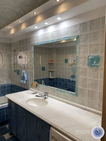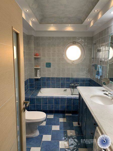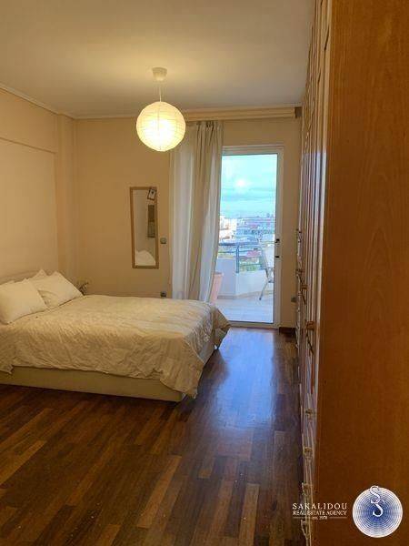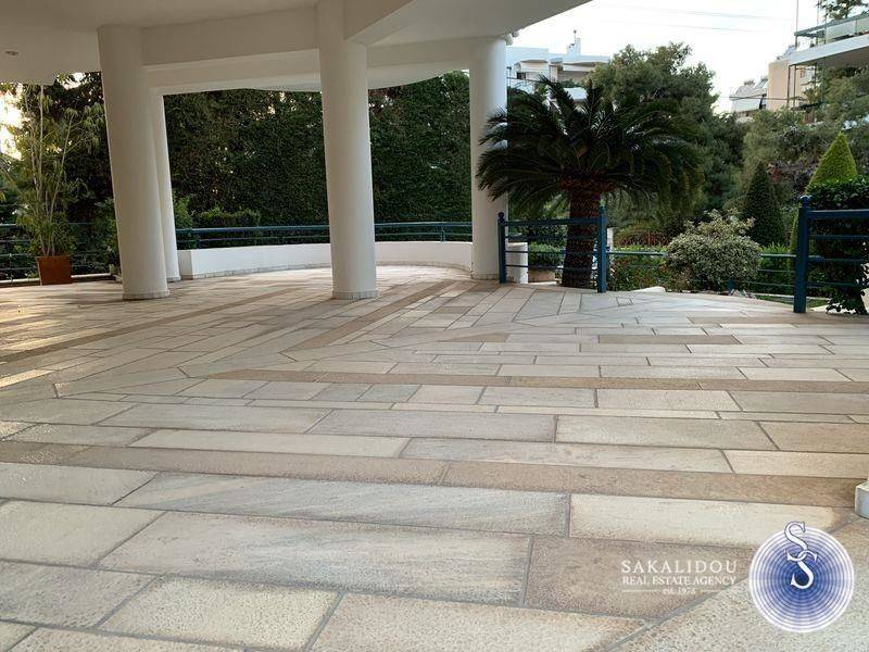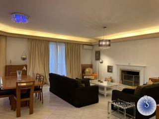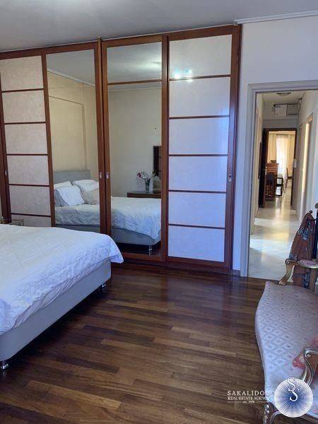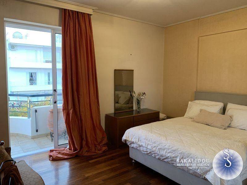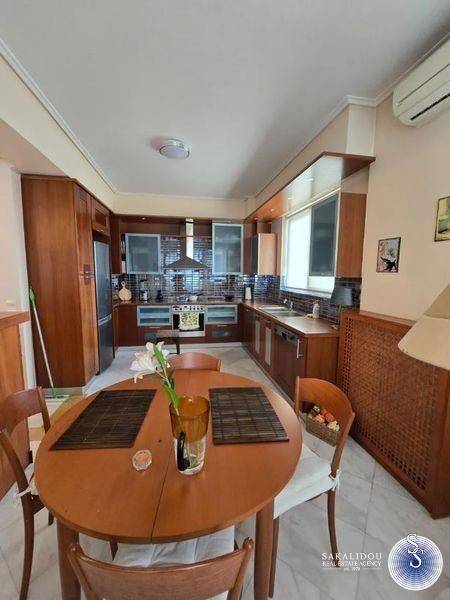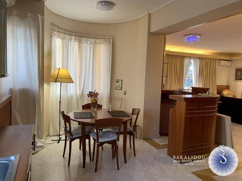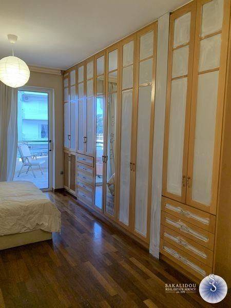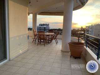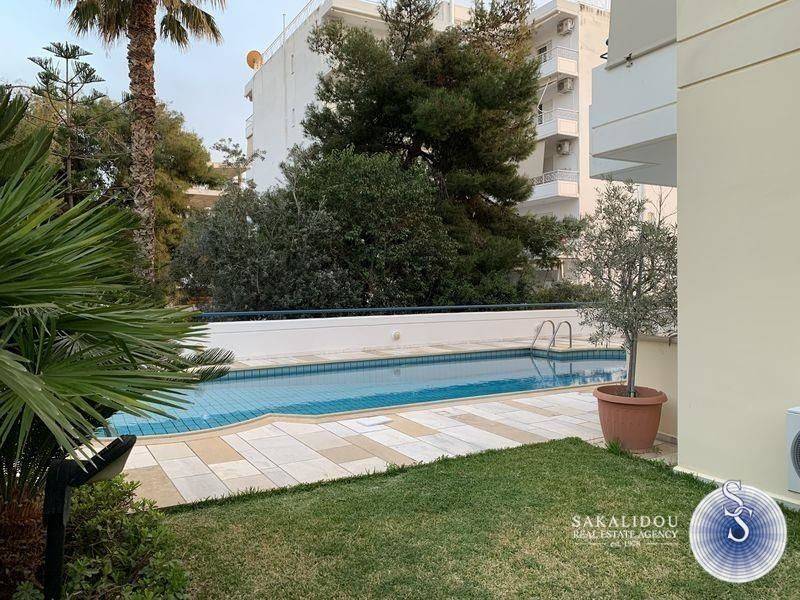 Luxurious furnished 3rd floor property in the Golf area of Glyfada with view and swimming pool, fantastic floor apartment of 120 sqm., available for the summer months, in excellent condition, fully equipped, decorated with special artistic objects - artwork from Igosca - Art ( Abstract paintings, Art concierge ). Consists of a comfortable and bright reception area with fireplace, 2 bedrooms with double bed, 1 office room with sofa bed, 1 bathroom with bathtub, 1 WC with shower cabin, comfortable kitchen fully equipped with built-in electrical appliances, large veranda in the living room and 2 small ones in the bedrooms. It also has underfloor heating-electricity, air conditioning, solar, awnings, hidden lighting, security doors, alarm and 2 parking spaces. Luxurious and bright property, built in 1996, in a very quiet neighborhood, ideal for a holiday home since it is available for short-term rental, up to 6 months stay. Cleaning service and chef are offered upon agreement.