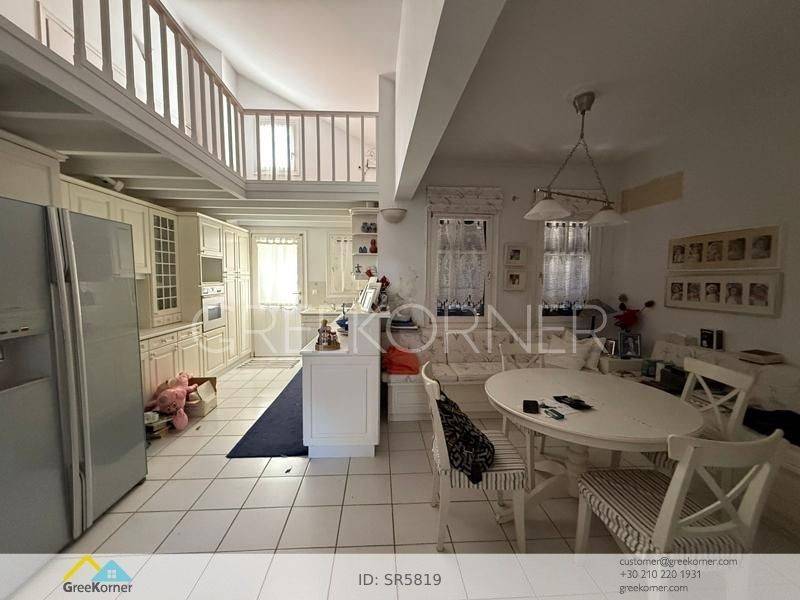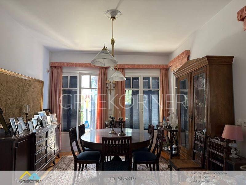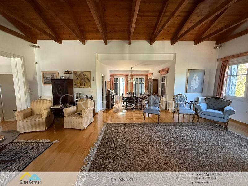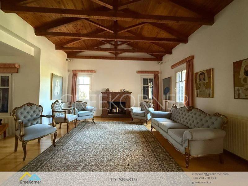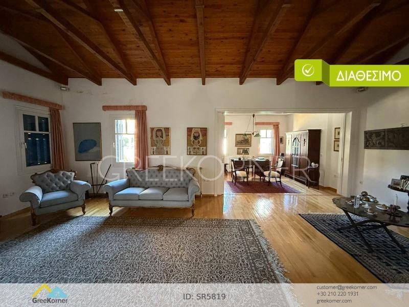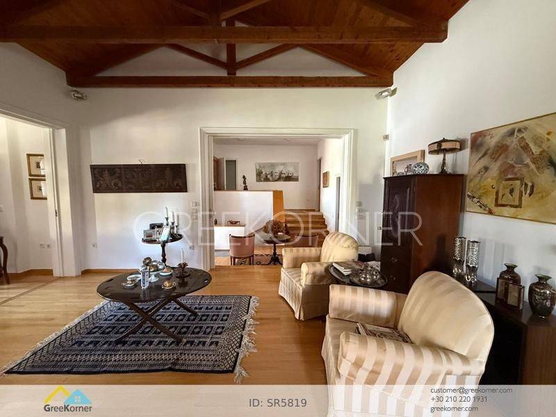 Kifissia, Politia - Detached House 465sqm plot 715sqm, electrical appliances furnished, bedrooms 3, master bedroom, levels 2, basement - ground floor, very good condition, year built 1988, energy class F, living room, hall, kitchen, bathroom, 2 wc, heat pump, air condition, parking covered,3+, quiet, dual aspect apartment, mountain view, frontage, storage space, boiler, fireplace, balconies, garden, wooden frames, double glazed windows, wood & tile floors, separate kitchen, without common charges, secure door, alarm, internal staircase, internet, residential zone, access from asphalt.