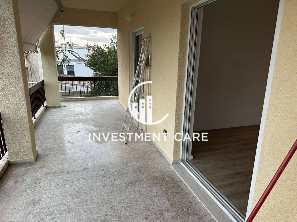 In a nice location near the Center of Chalandri, 80sqm 2nd floor apartment, built in 1980 and fully renovated, consists of a living room that opens onto a large terrace, independent kitchen, 2 comfortable bedrooms, bathroom, has a security door, wooden floors, double glazing, one parking space. Price: €270,000.