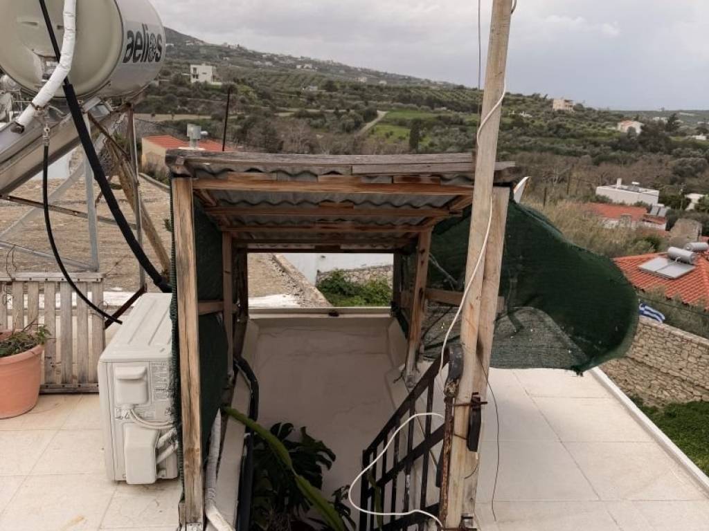 In the area of Agios Dimitrios, at a distance of 10 km from the town of Rethymno, an independent residence with a total surface area of 70.24 sq.m., built in 1954, is offered for sale. It is a property with a strong traditional character, ideal for owner-occupation or tourist use. The ground floor (40 sq.m.) consists of an open-plan living room and kitchen, a bathroom, and a small storage room. The upper floor (30.24 sq.m.), accessed via an internal wooden staircase, includes two bedrooms, a hallway, and a balcony. The residence retains authentic features such as wooden floors and ceilings, offering a warm and traditional atmosphere. It also features a rooftop terrace with open views, with the potential to be developed into a relaxation area.