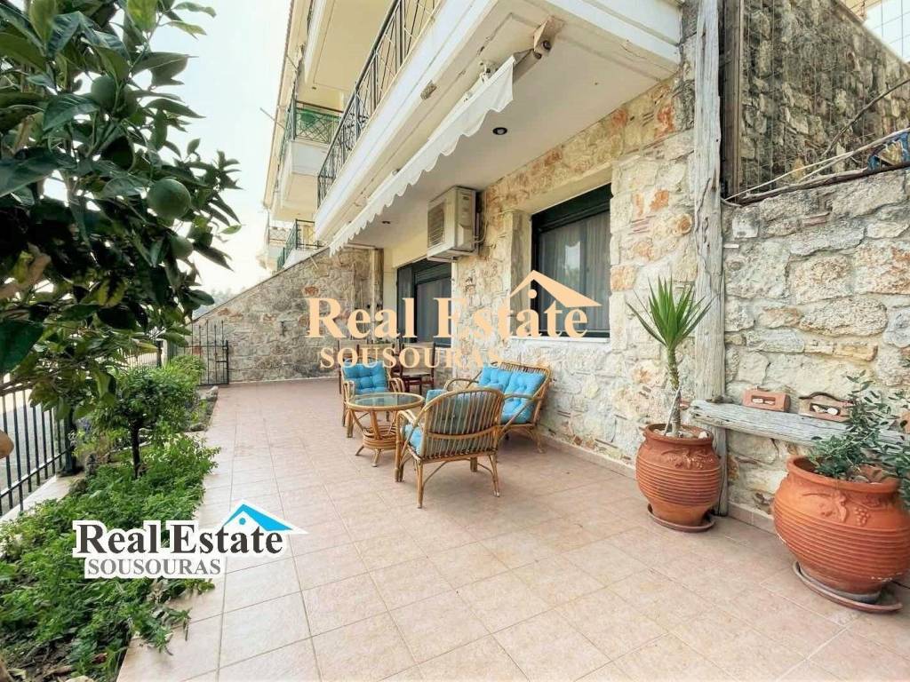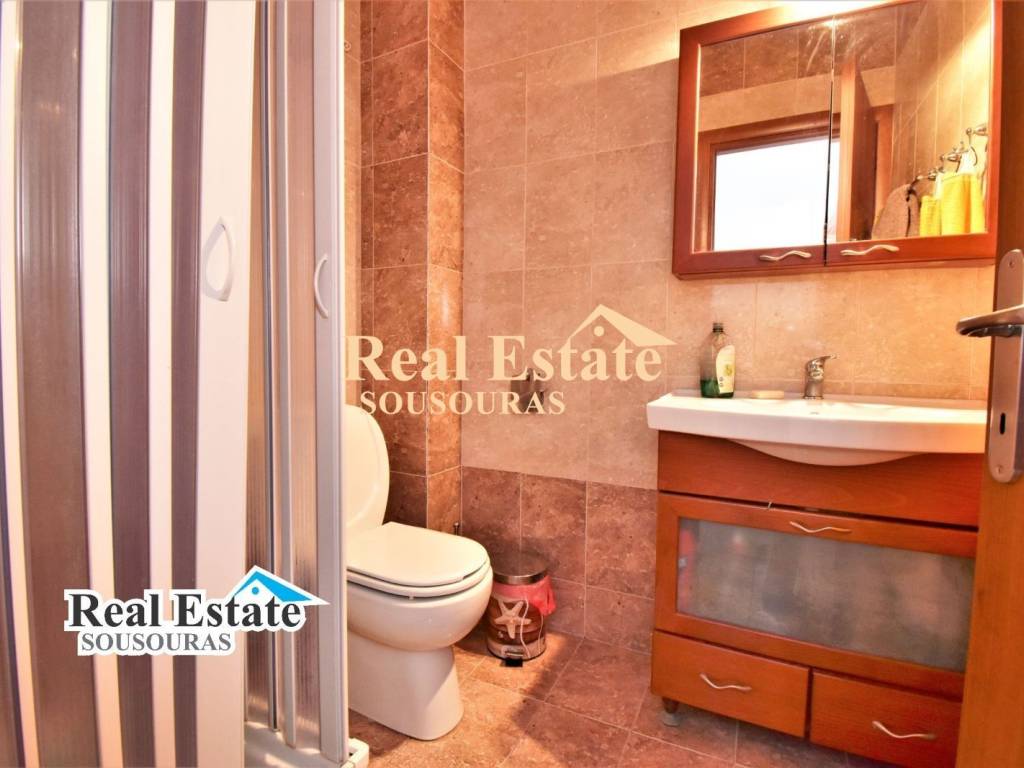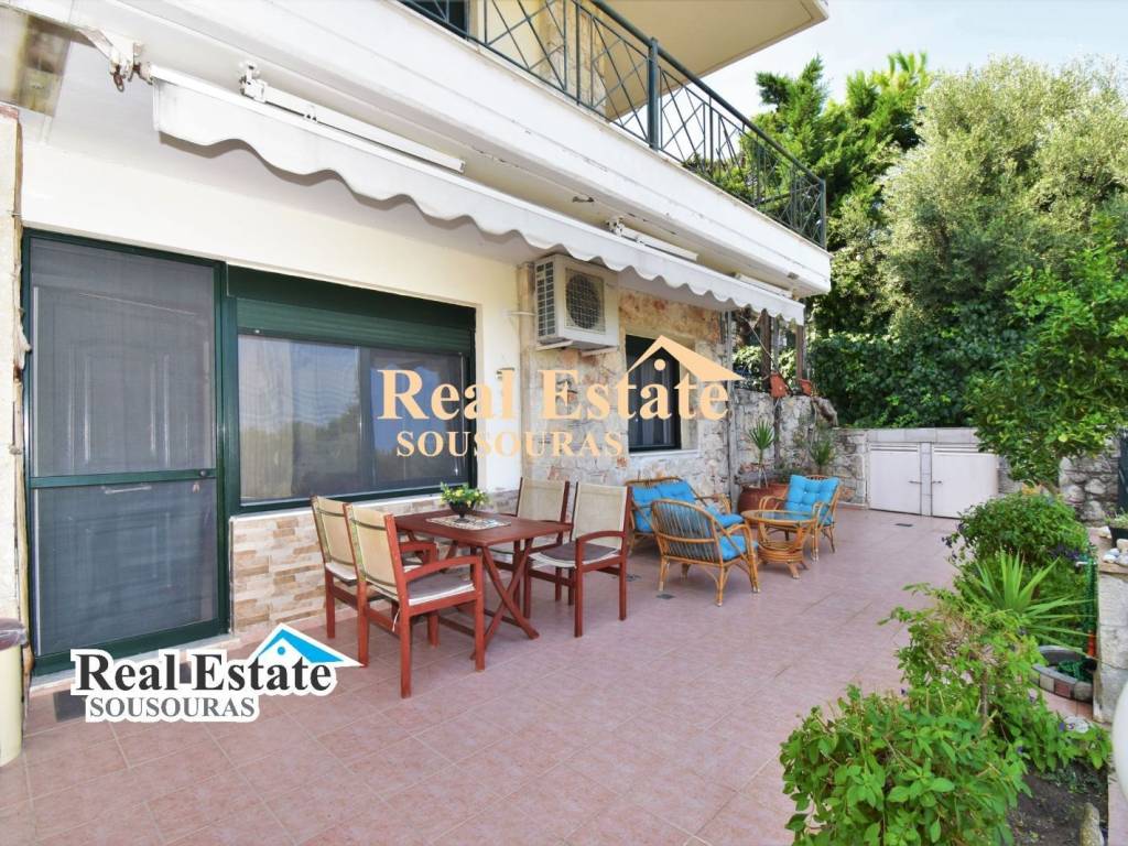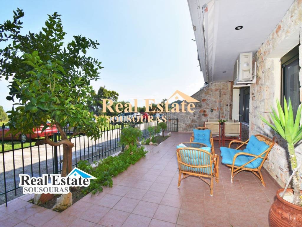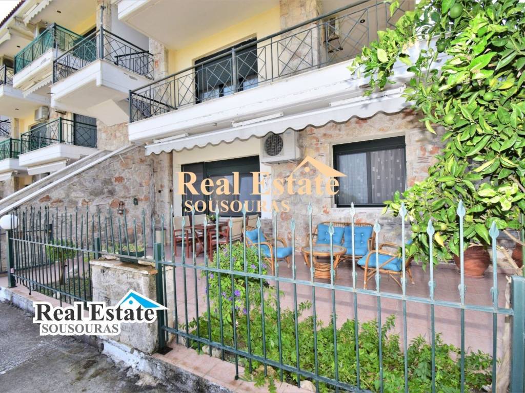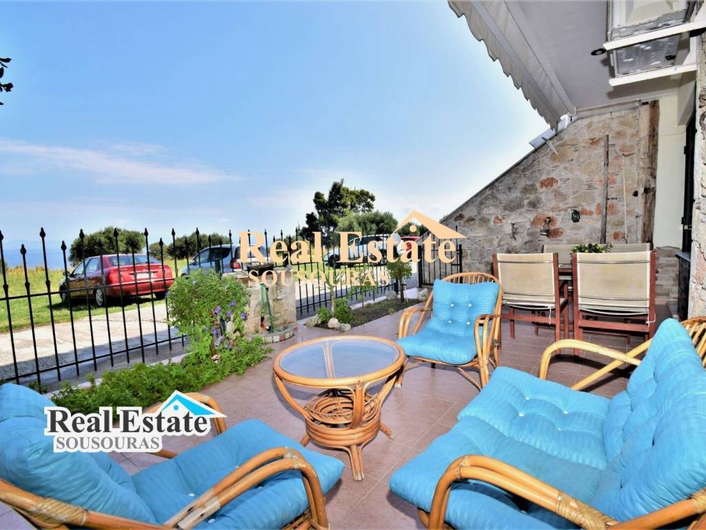 Amazing ground floor apartment, in an area of ​​unique natural beauty, 9000m from a wonderful beach with crystal clear waters and fine sand. It is ideal for tourist or permanent residence and consists of two bathrooms, three bedrooms, living room, kitchen and large terrace overlooking the sea of ​​Kassandra. It has a security door and windows, fireplace, individual heating (oil radiator) Daikin air conditioning and a fenced garden The apartment is located 900 m from a wonderful beach, 100 m from the village market with cafe super markets, shops and taverns, 88 km from Thessaloniki Airport and 9 km from Hospital. For more information just call +30 6977246200, Sousouras Vasilis Halkidiki Realtor.