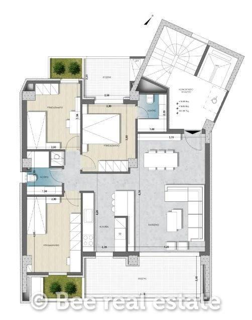 KALAMARIA. FOR SALE by Bee One Real Estate, a uniquely designed apartment under construction, located on the 6th floor, with a total surface area of 122 sq.m. The property is situated in a newly built seven-storey residential building of energy class A+, featuring pilotis and a basement, with a south-east orientation and just 400 meters from a METRO station. The apartment is through-layout and exceptionally bright, offering a modern and highly functional design. It comprises an open-plan living room, lounge and kitchen area, three bedrooms, one of which is a master bedroom with a private en-suite bathroom, as well as a second spacious bathroom. The property includes a parking space on the ground floor (pilotis) and a storage room in the basement of the building. The apartment offers comfortable and well-designed spaces, large balconies in all areas, external thermal and sound-insulated security window frames with double glazing, and heating via an individual natural gas boiler. It is constructed using high-quality materials and advanced systems, including ALUMIL energy-efficient aluminum frames, BAUMIT thermal insulation façade, the SCYPLATFORM smart home system by INSPINIA, a WOLF condensing natural gas boiler, underfloor heating, air-conditioning pre-installation, and a mechanical ventilation system with heat recovery. Additional features include a full alarm system, fiber optic network and satellite antenna installation, electrical provision at the parking space for an electric vehicle, a branded Italian kitchen, a security entrance door, a hybrid elevator, and the installation of a communal photovoltaic system, ensuring zero energy consumption for the building’s common areas. This is a distinctive high-specification property, designed and built to meet all modern standards of safety, thermal and acoustic insulation, and sustainable, eco-friendly living. The displayed address is indicative of the property’s location.