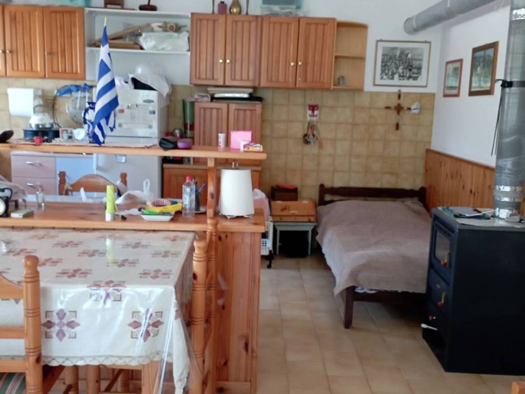 The house is in PANAGIA KALAMBAKAS, a beautiful mountain village of TRIKALA THESSALIAS, in 670 meters altitude. PANAGIA KALAMBAKAS is 40 kilometers north of METEORA and 20 kilometers south of METSOVO. The estate is in the south end of the village and has no other houses around it, to block the magnificent view of the all around beautiful green mountains. Actually they are two connected properties of 400 m2 each (800 m2 in total) with a very good fence. In the first of them is the house, two warehouses, parking place for two cars, a small vegetable garden and a big garden with: a pine tree, a cherry tree, three plum cherry trees and two plum trees, a lot of free space and with a little water spring in it. In the second of them there is nothing but free space and has an autonomy to build a second house. The house itself is in very good condition, with undivided kitchen and sitting room, with a big fireplace and all the rooms has plenty of natural sunlight. A great asset of the house is a big balcony with the most beautiful view of the surroundings.